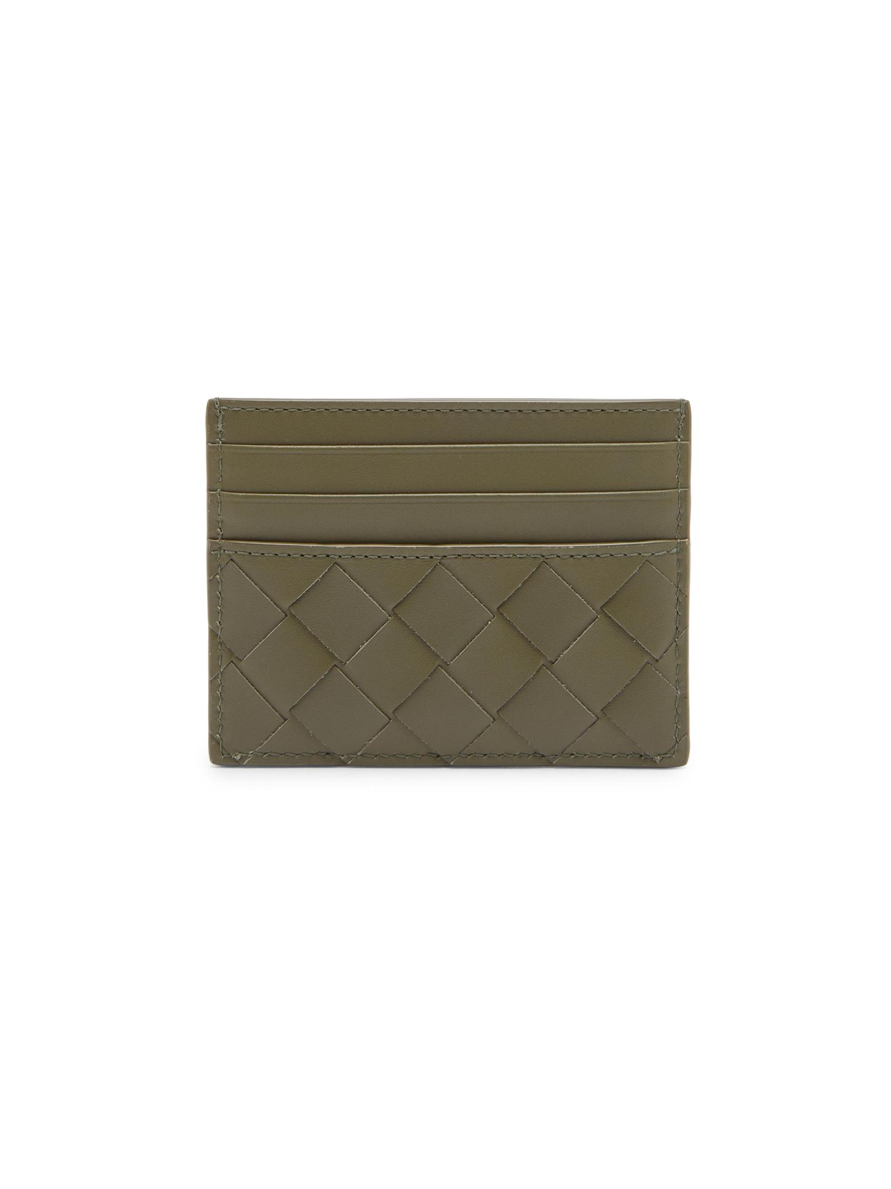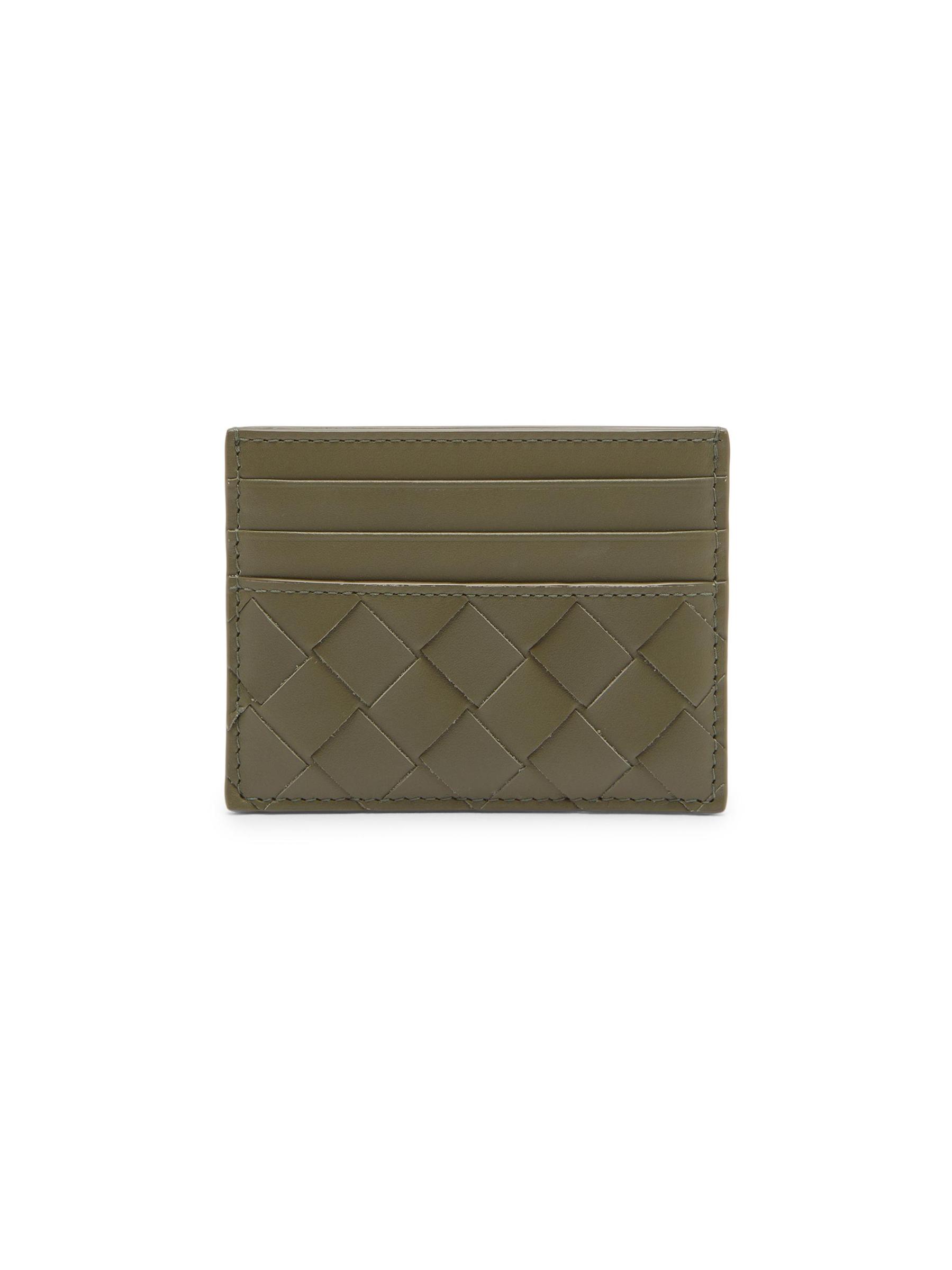 This leather card case from Bottega Veneta displays the house's signature Intrecciato-pattern weave.