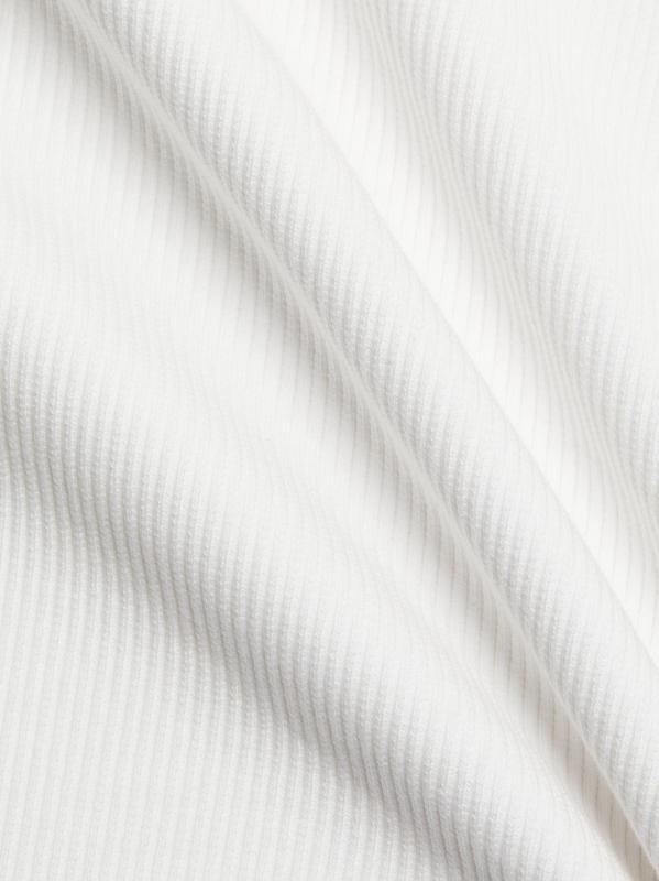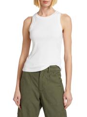 Fitted rib tank top with banded trim and halter silhouette.