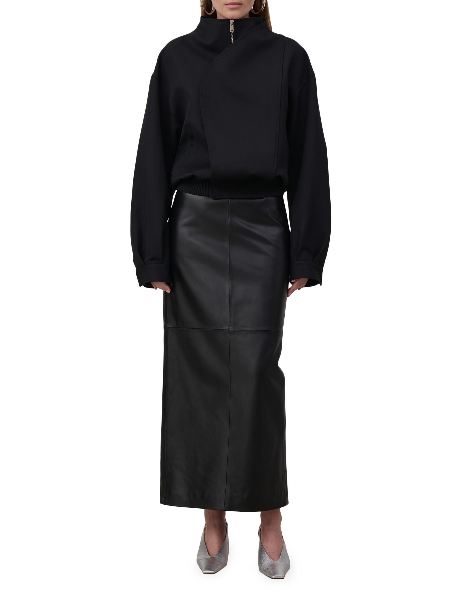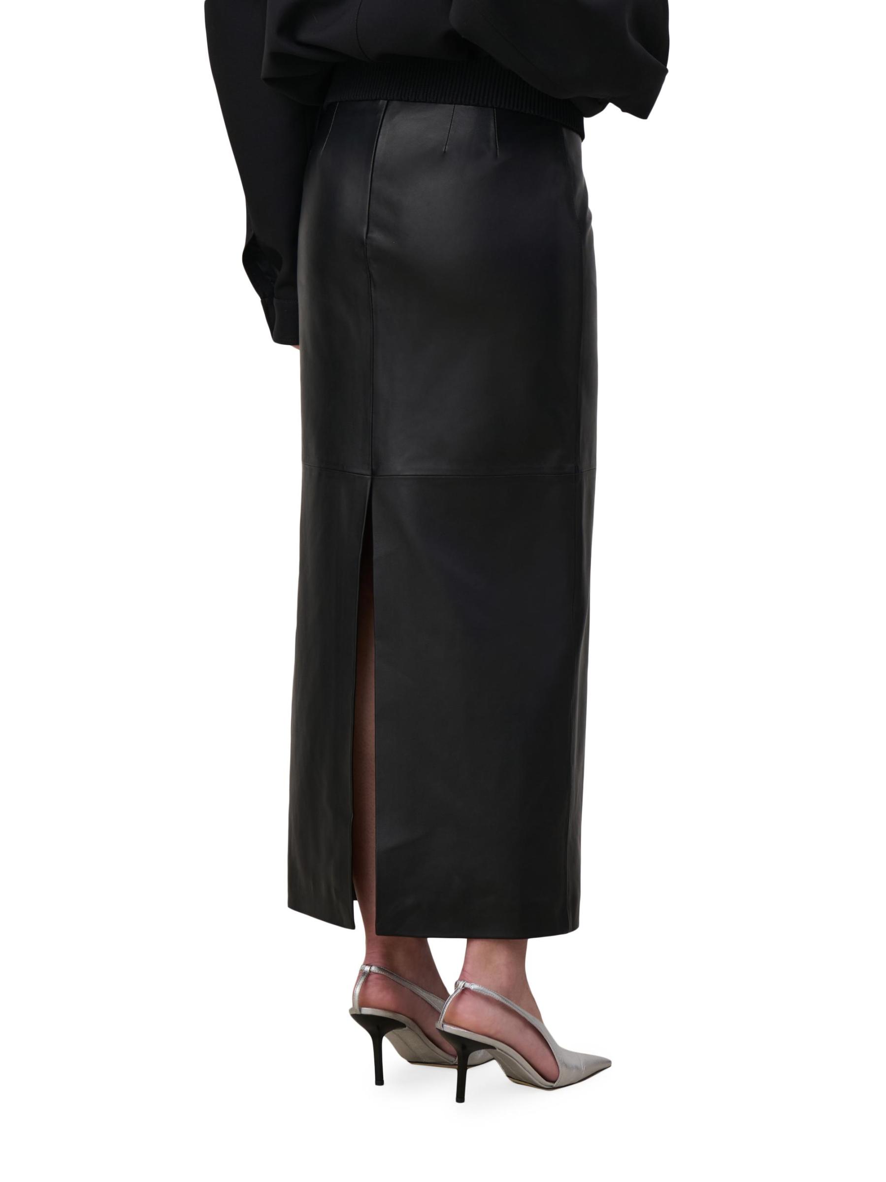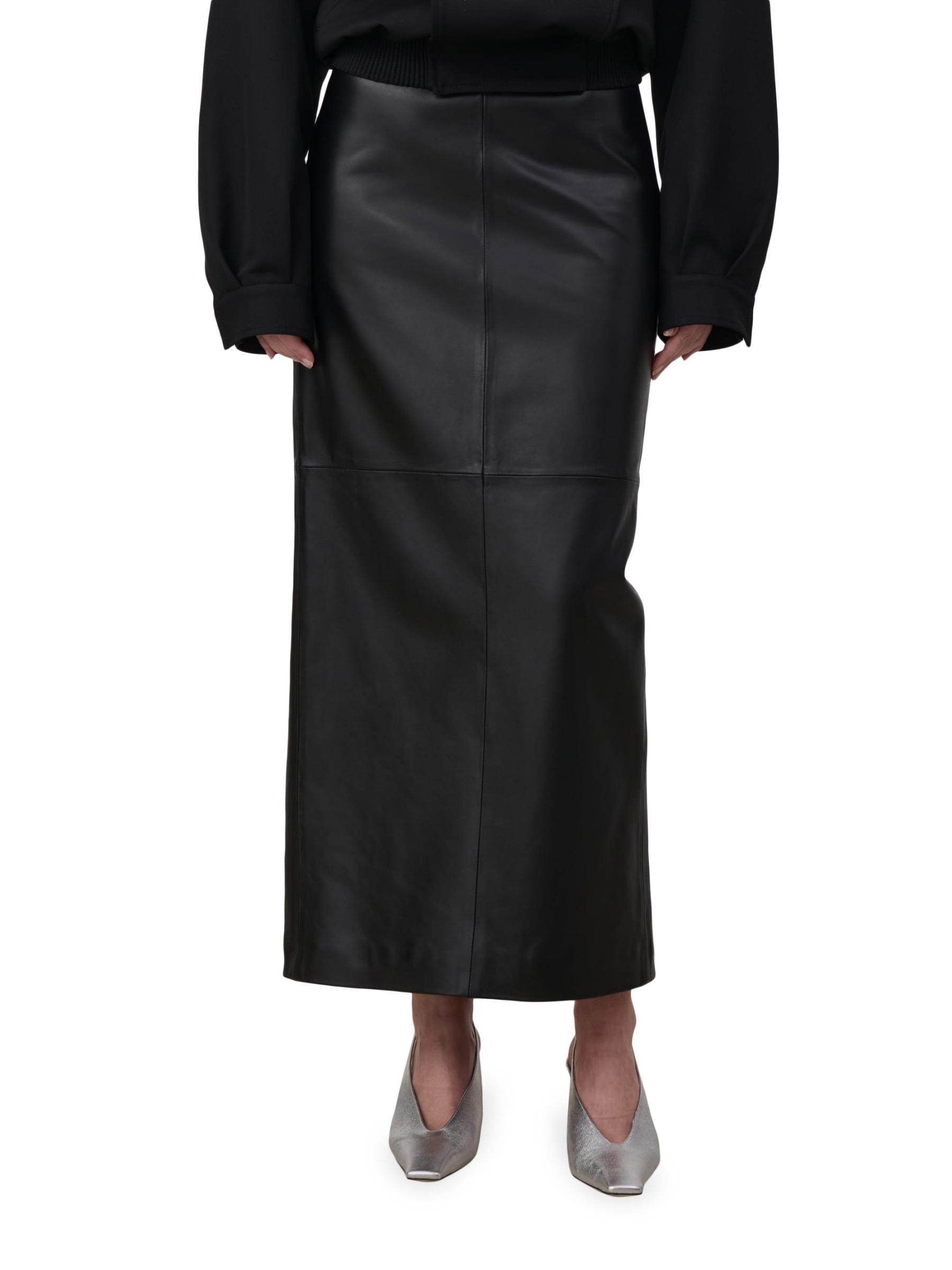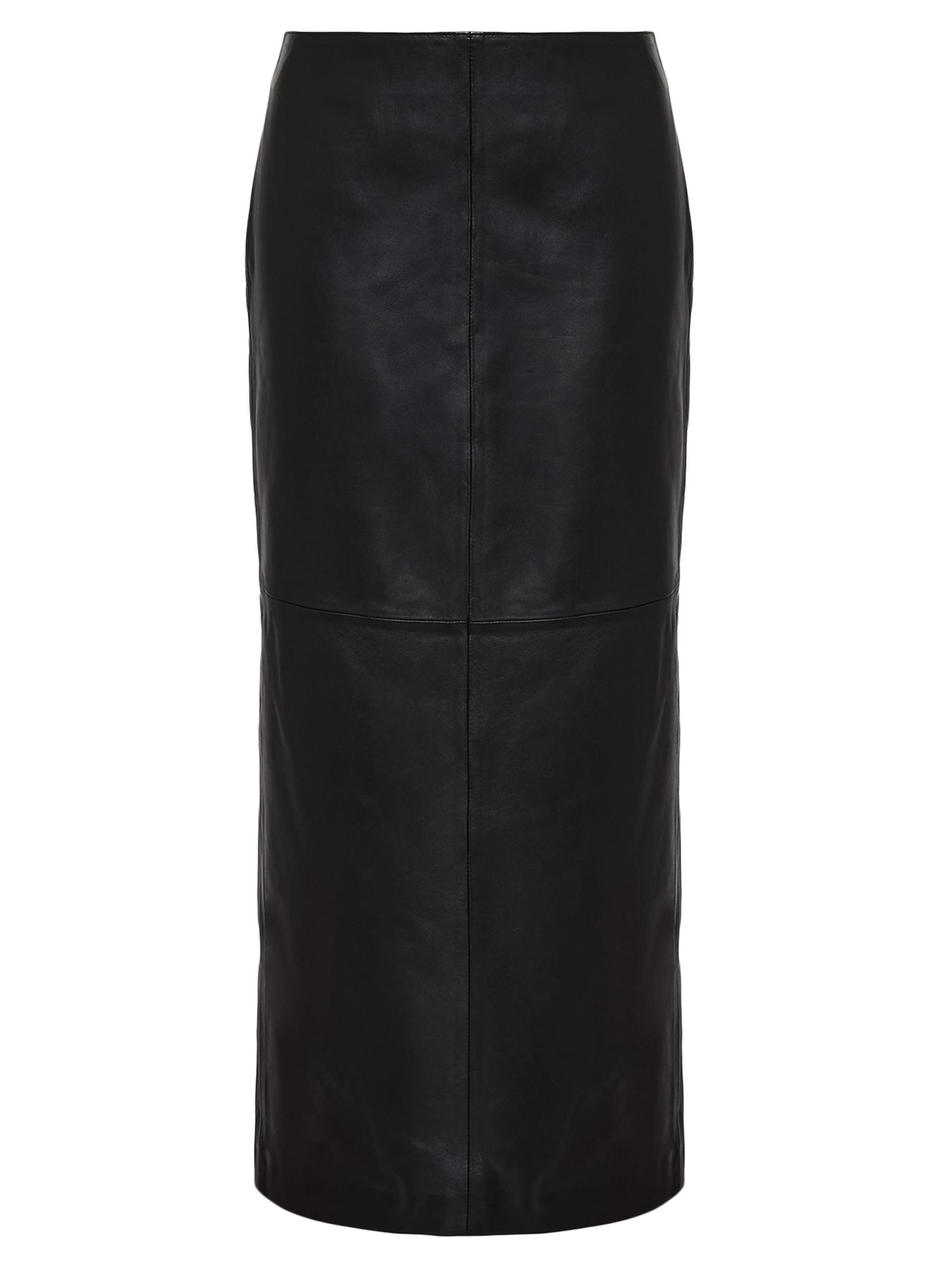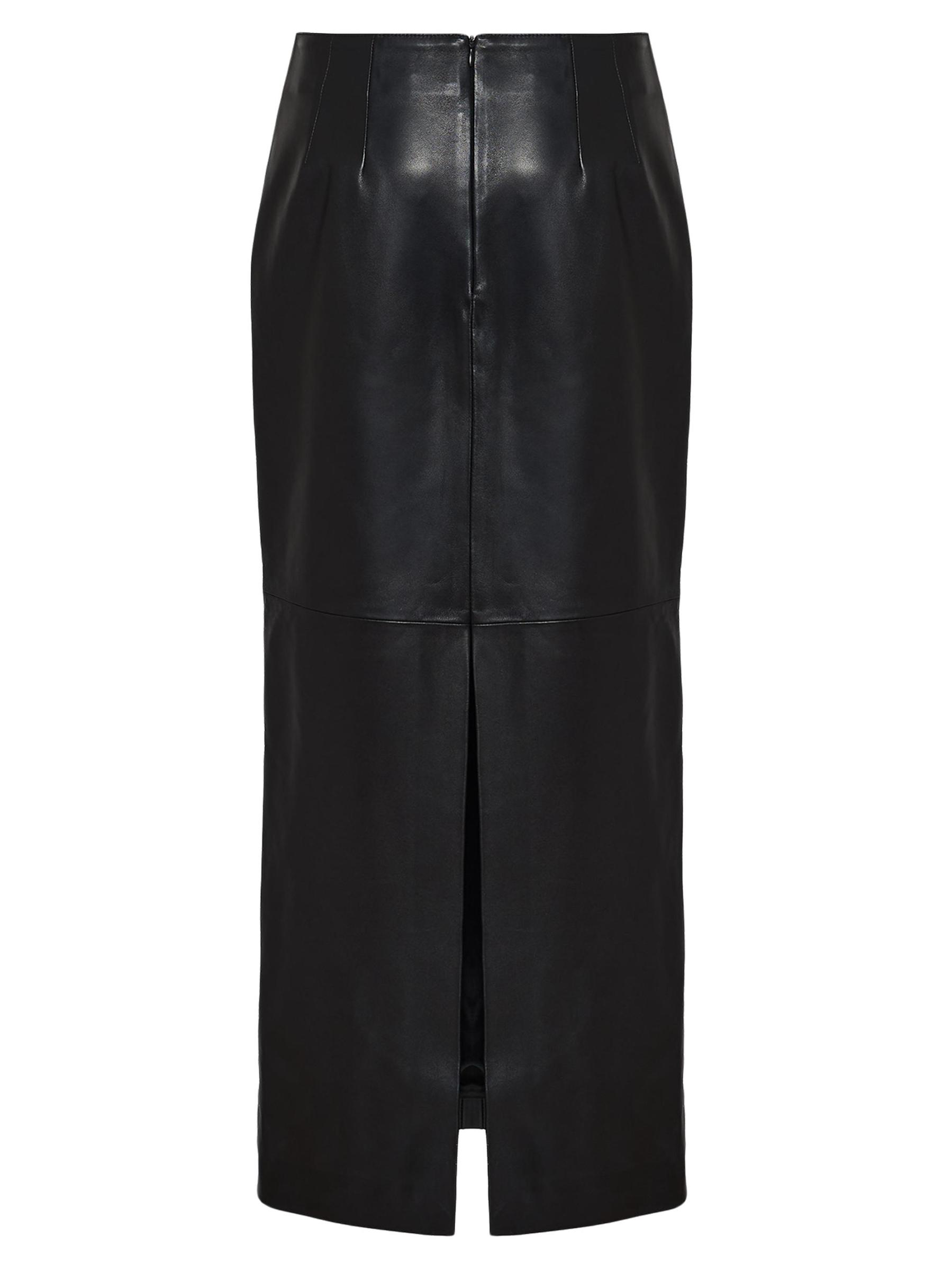 Crafted of Italian nappa leather, Armarium's sleek Jackie midi-skirt features a pencil silhouette, front seam detailing, and a back slit.