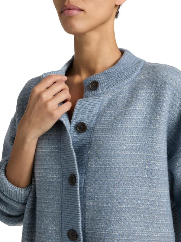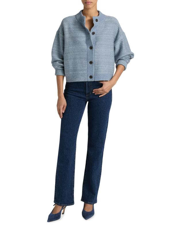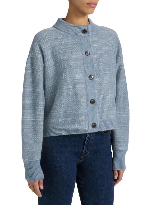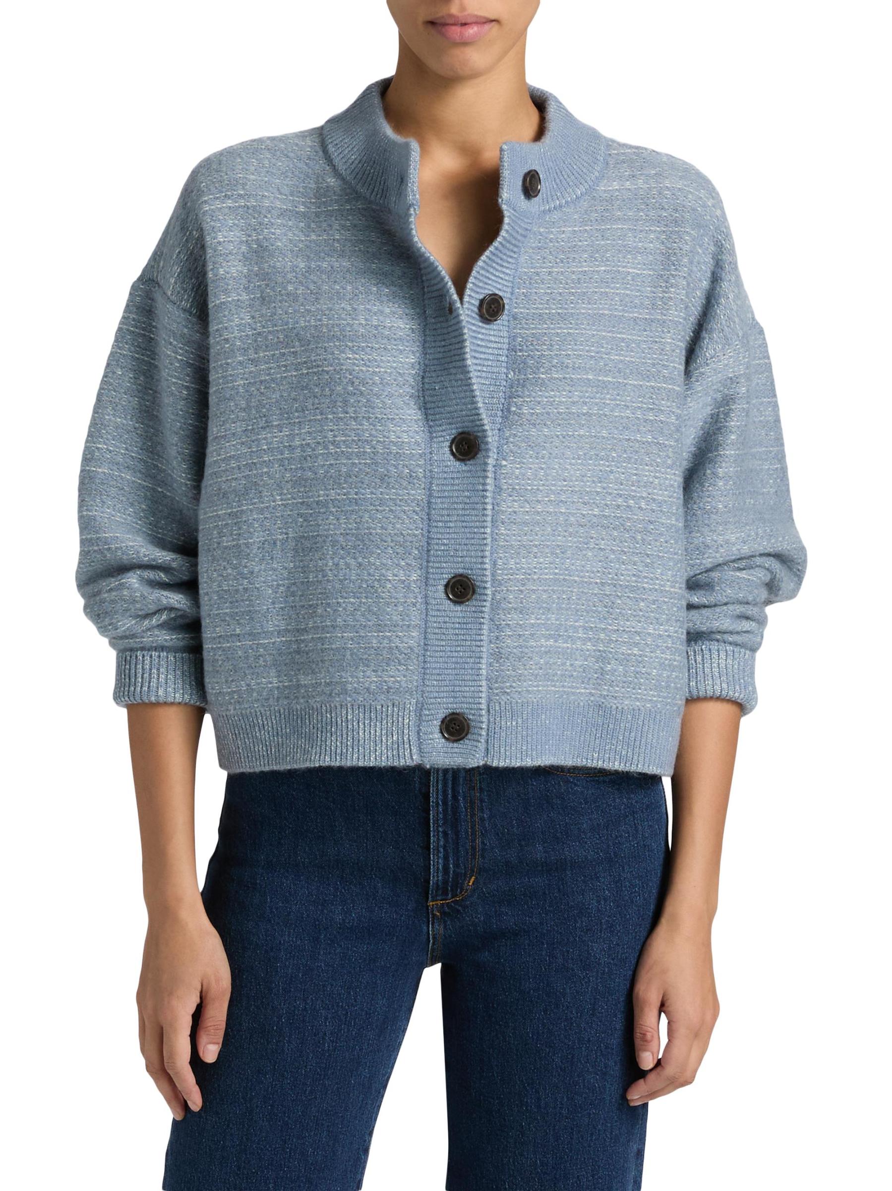 Crafted of a wool blend, this Frame jacquard femme cardigan features drop shoulders and a band collar with an easy, relaxed silhouette.