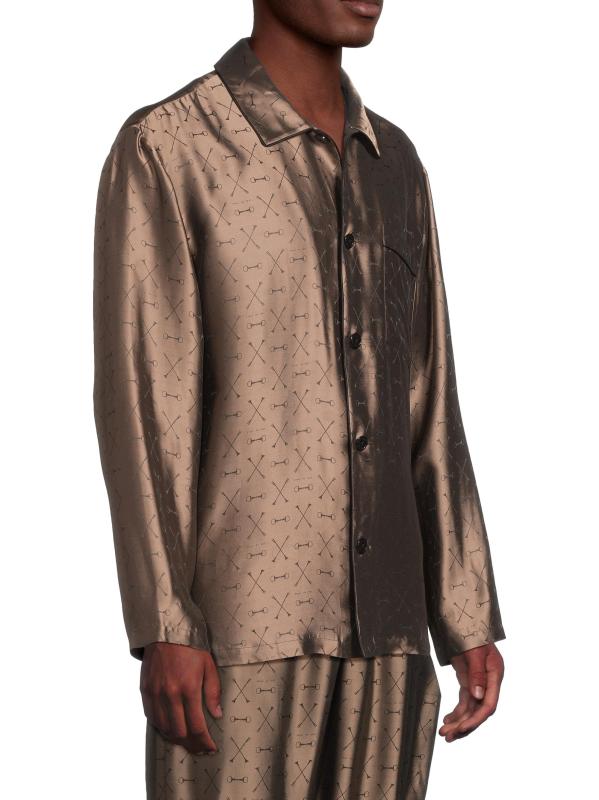 Jacquard Silk-Blend Button-Front Pajama Shirt