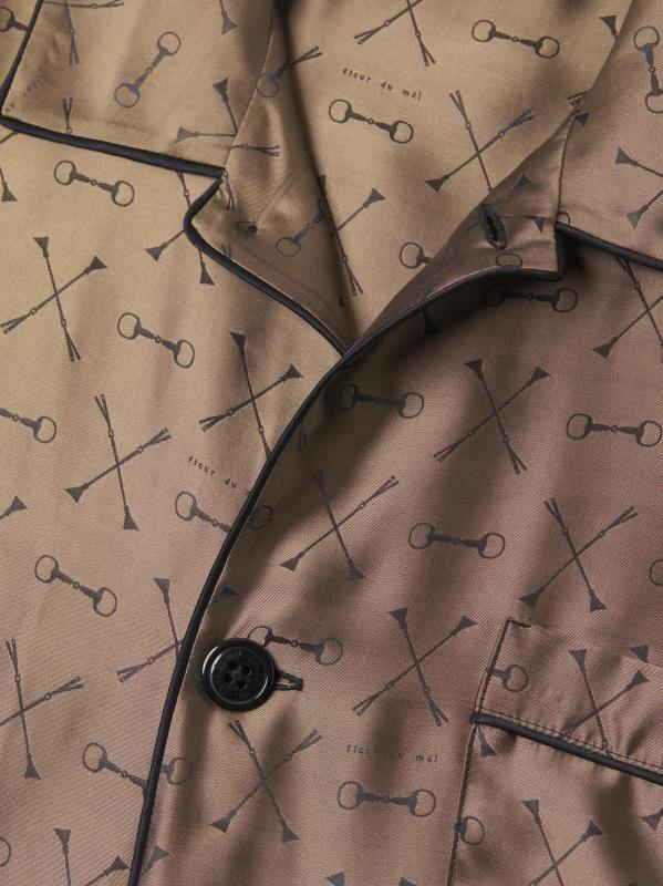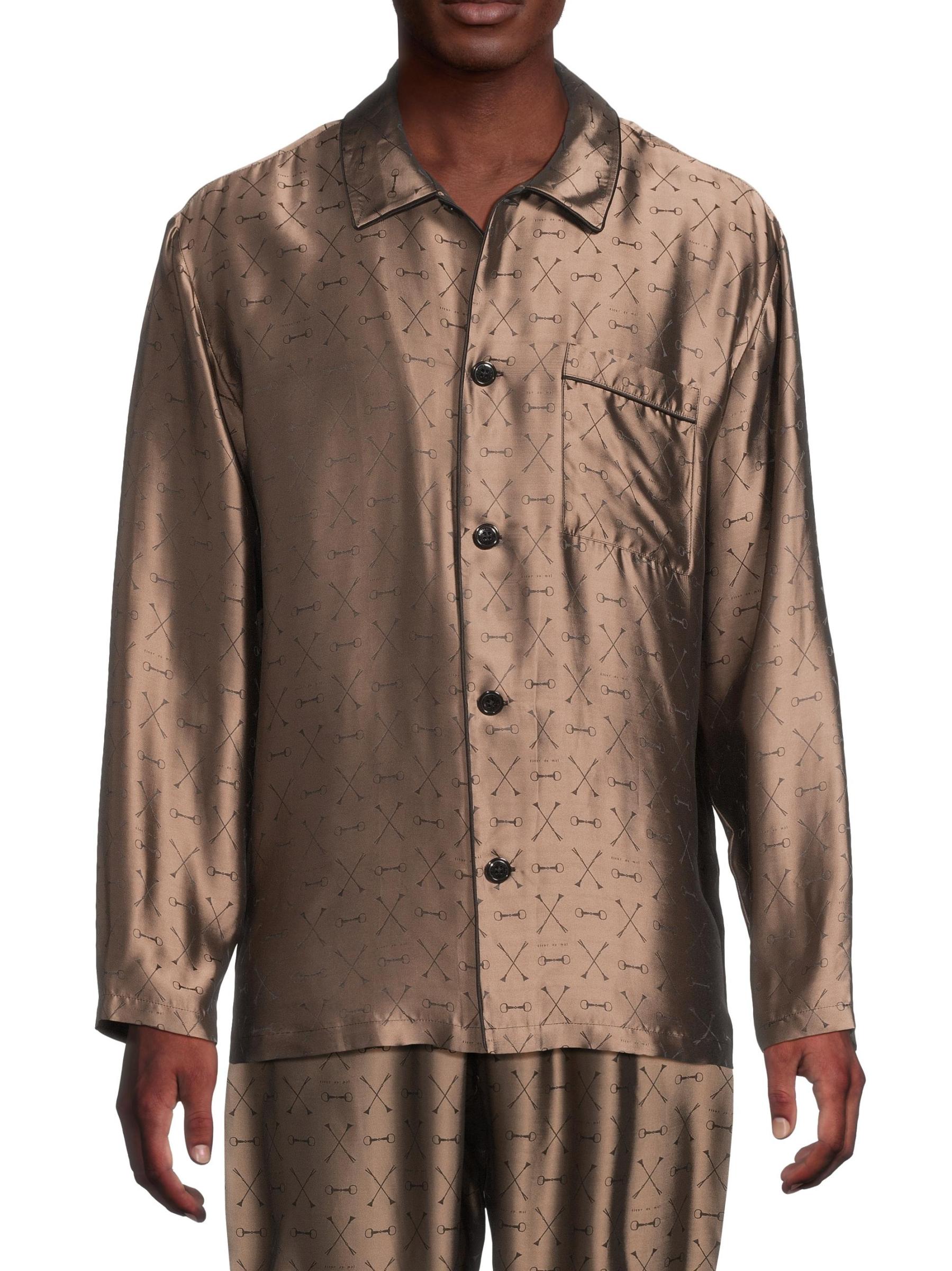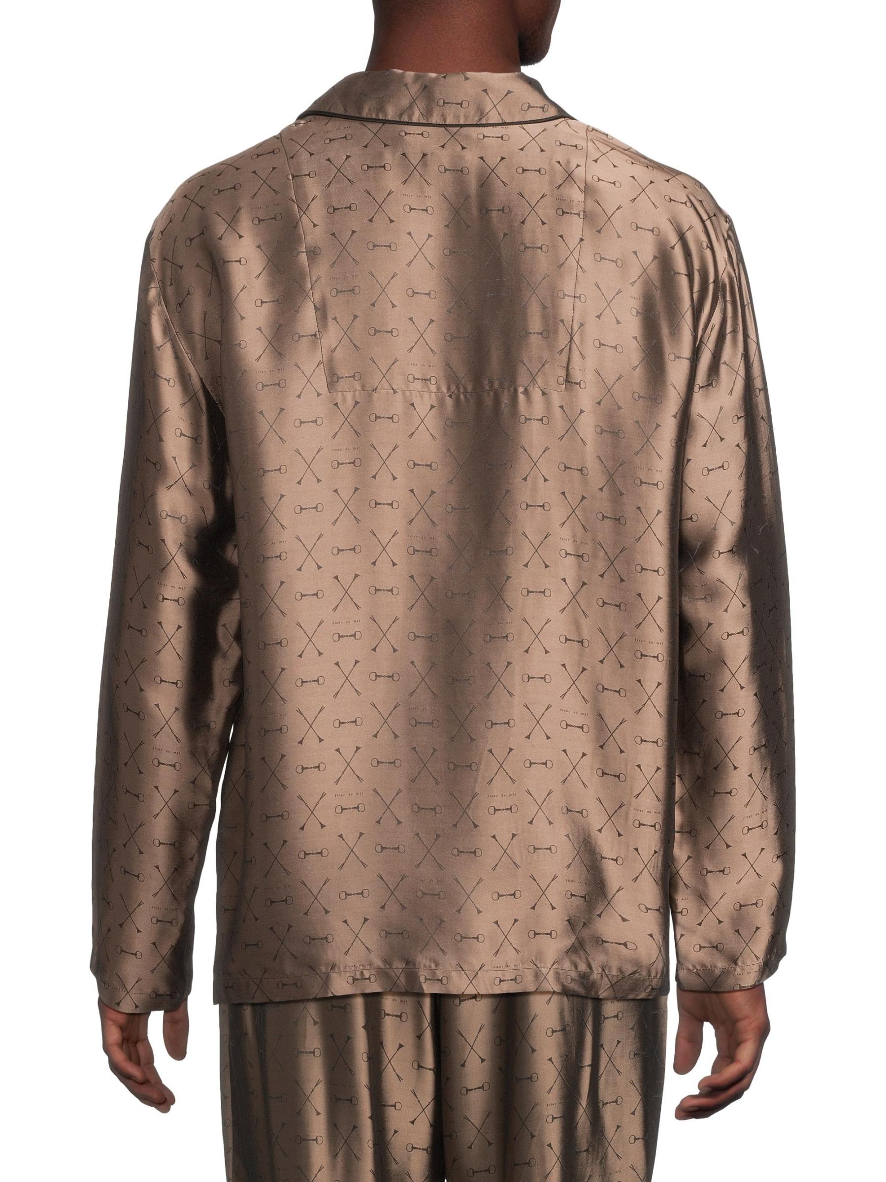Crafted of a luxe silk-blend, this Fleur du Mal's jacquard pajama shirt features a brand signature motif, point collar, and chest pocket.Point collar Long sleeves Chest patch pocket Button front closure 74% viscose/26% silk Dry clean Imported