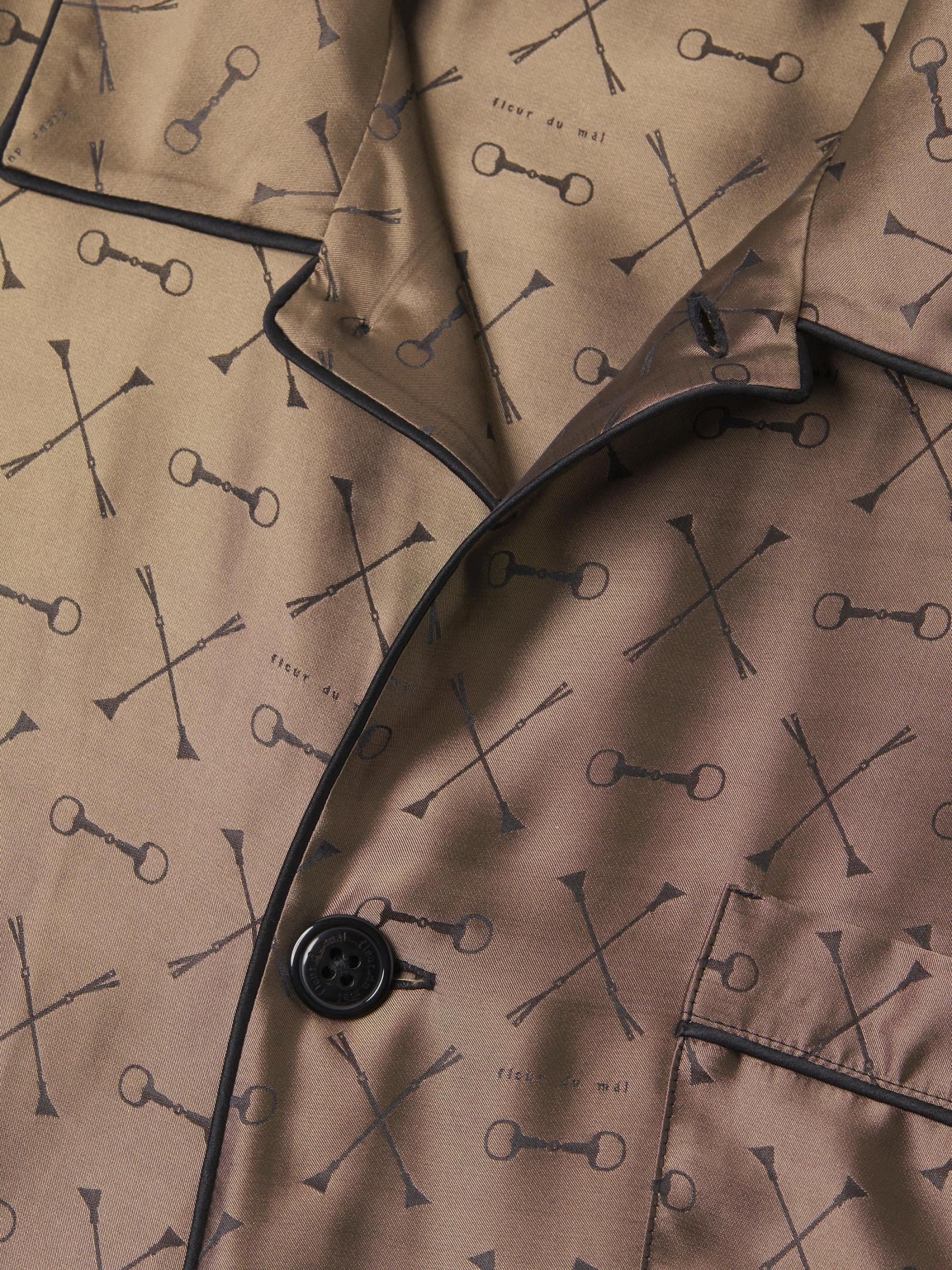 Crafted of a luxe silk-blend, this Fleur du Mal's jacquard pajama shirt features a brand signature motif, point collar, and chest pocket.
