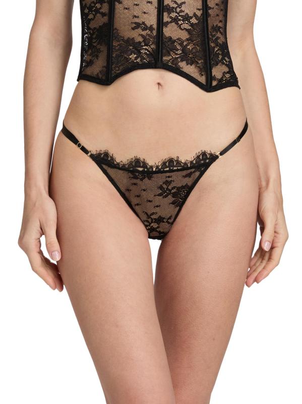 From the Jolie Collection. Crafted of sheer lace, this Kiki de Montparnasse thong features a back tie closure.Adjustable side straps Back tie closure 81% nylon/19% spandex Hand wash Made in USA