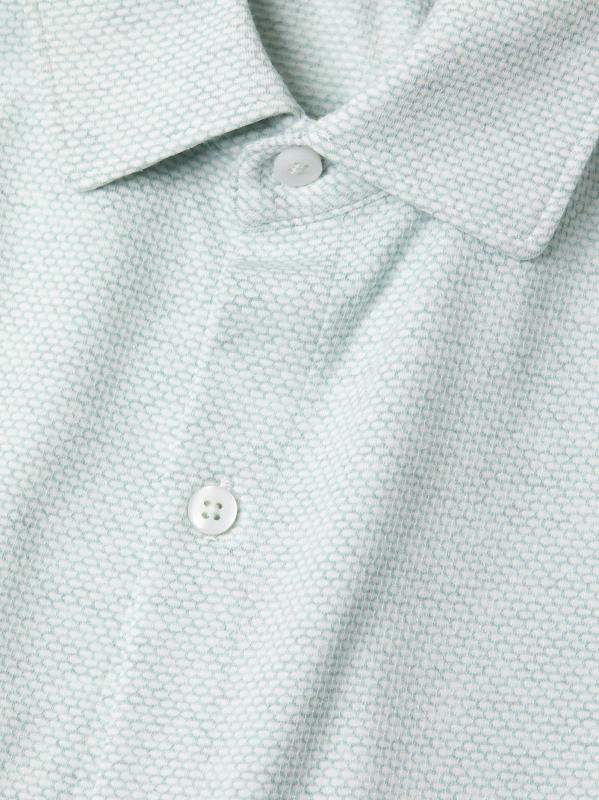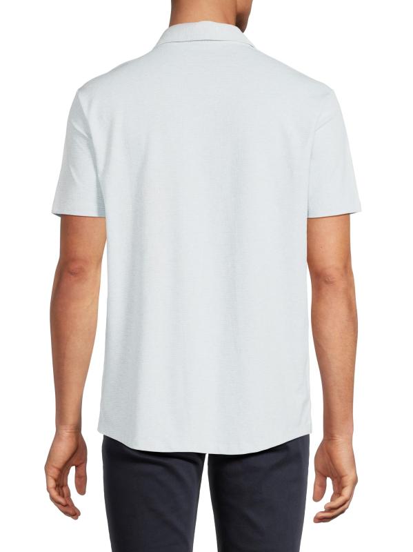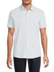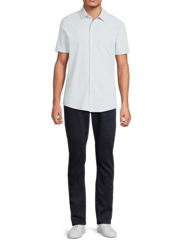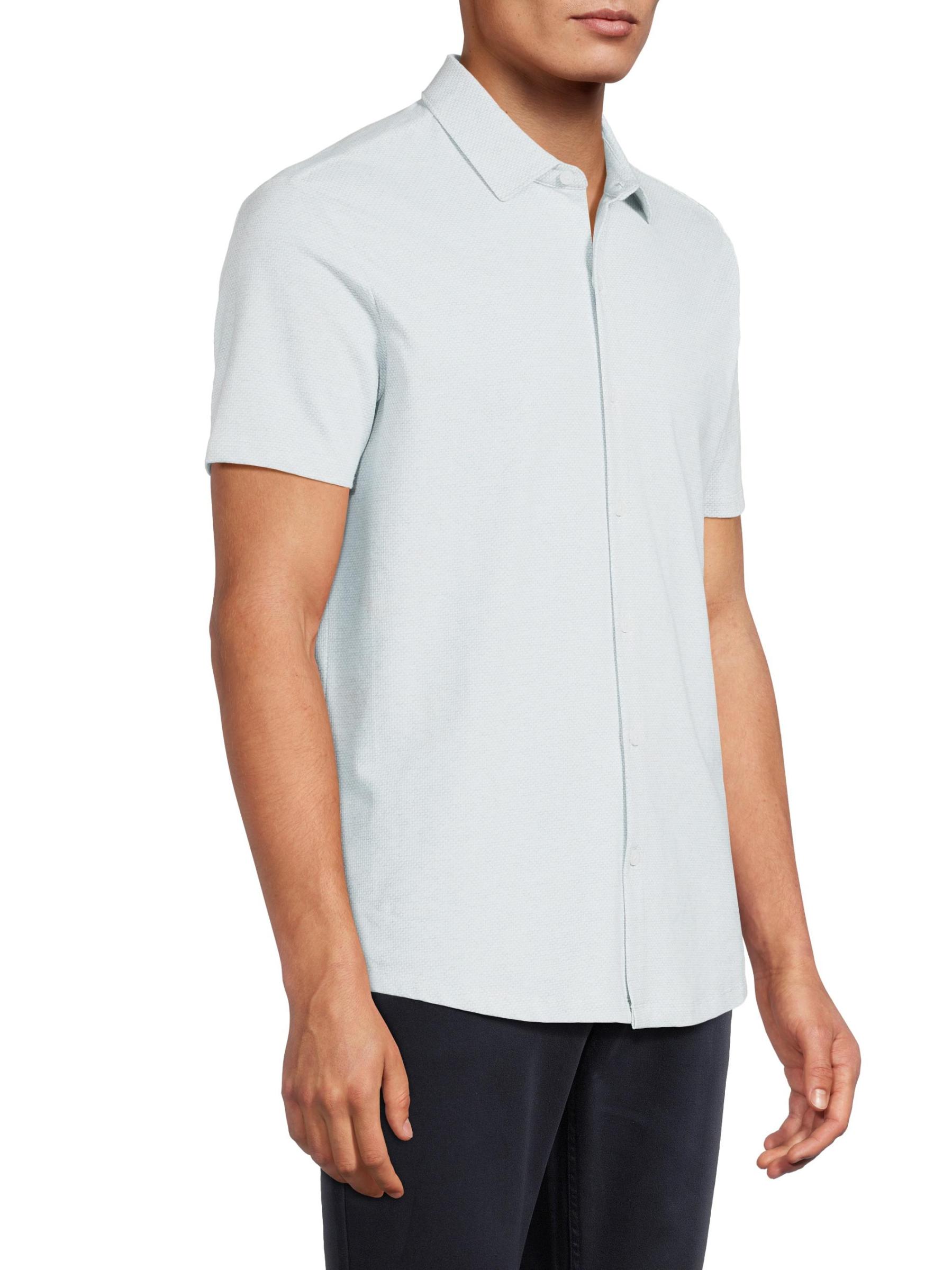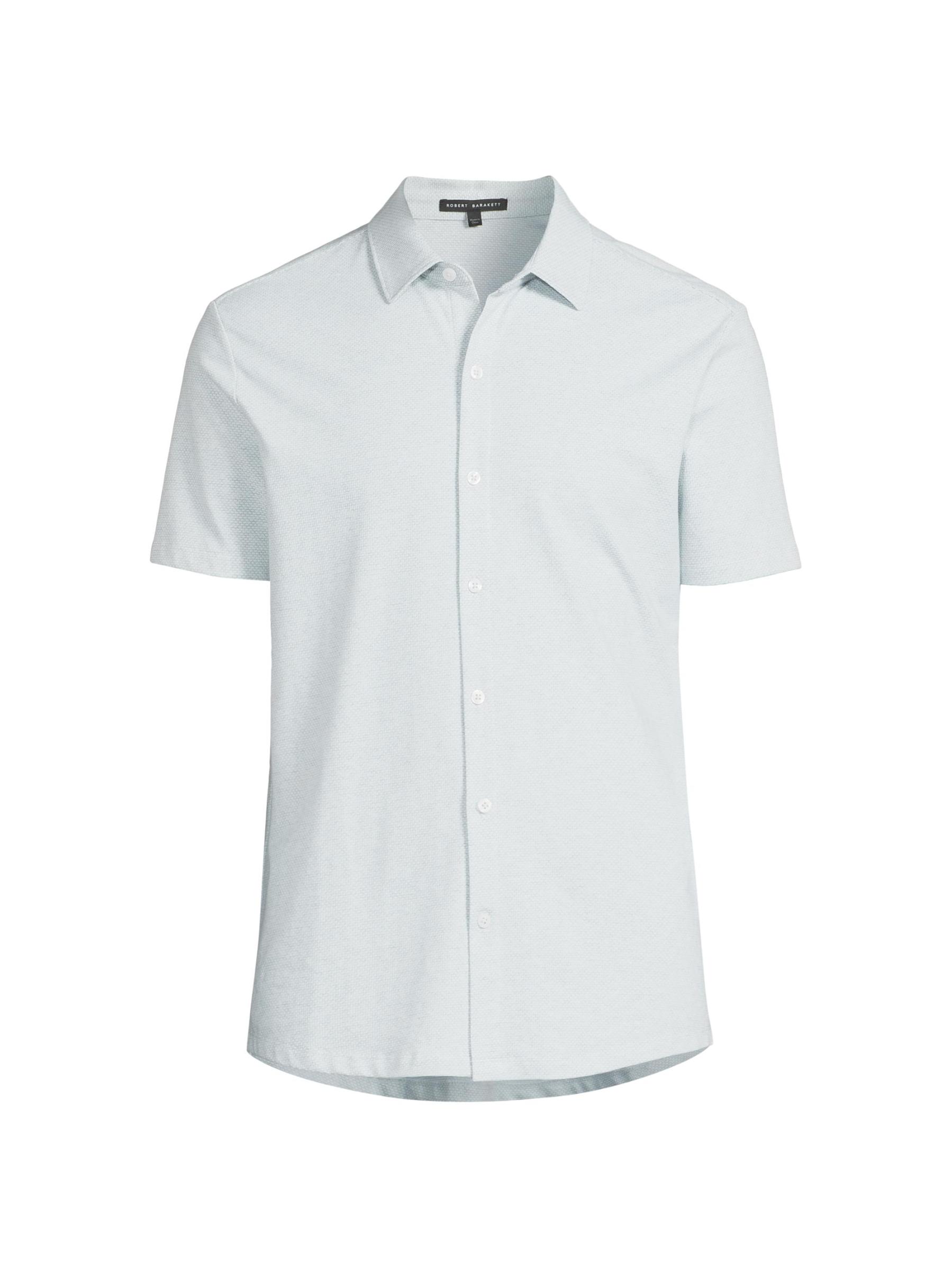 The Keyes Knit shirt from Robert Barakett highlights a spread collar, short sleeves, and a button-front placket.