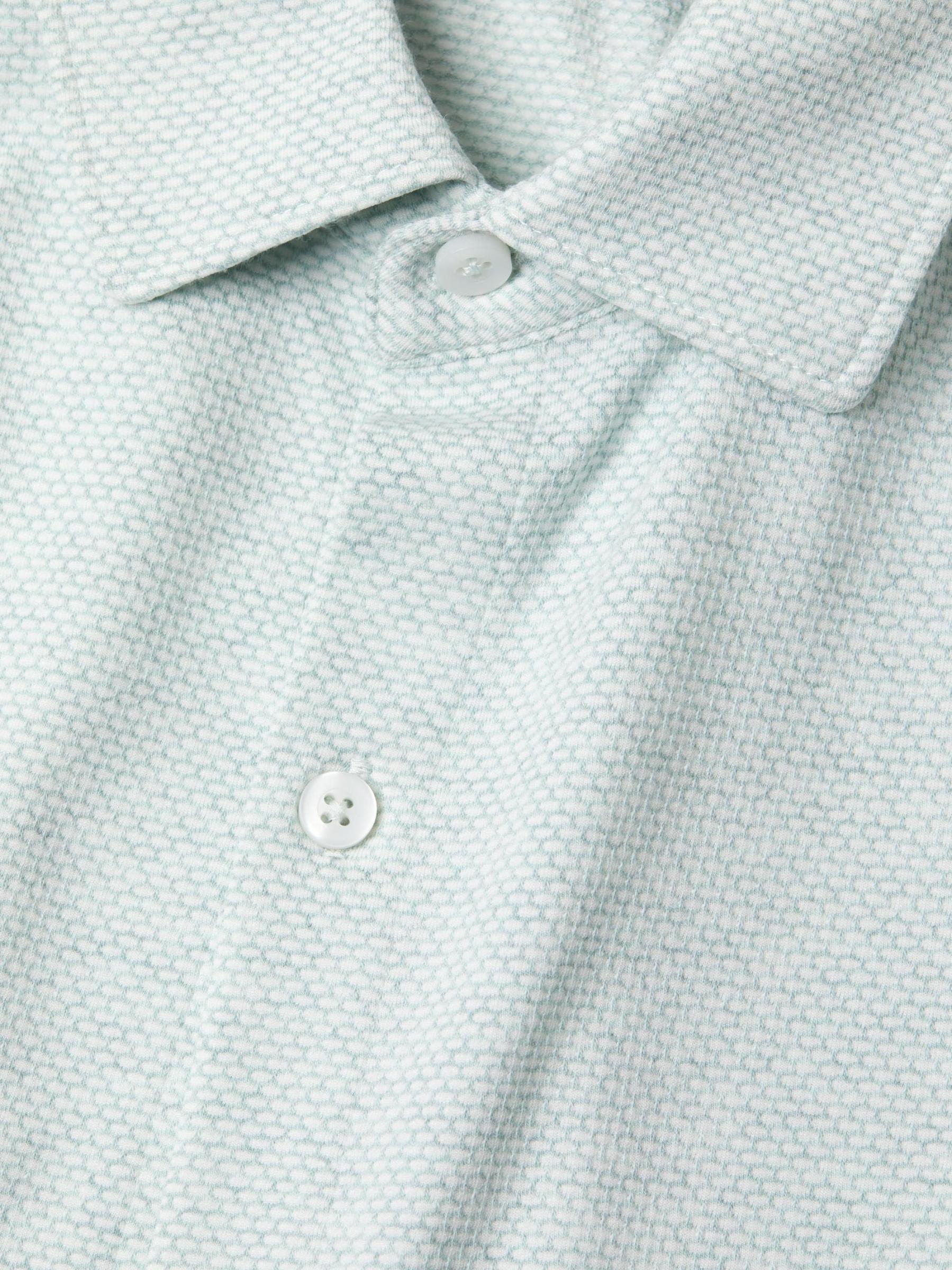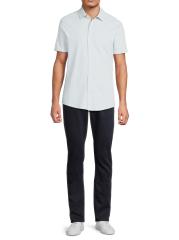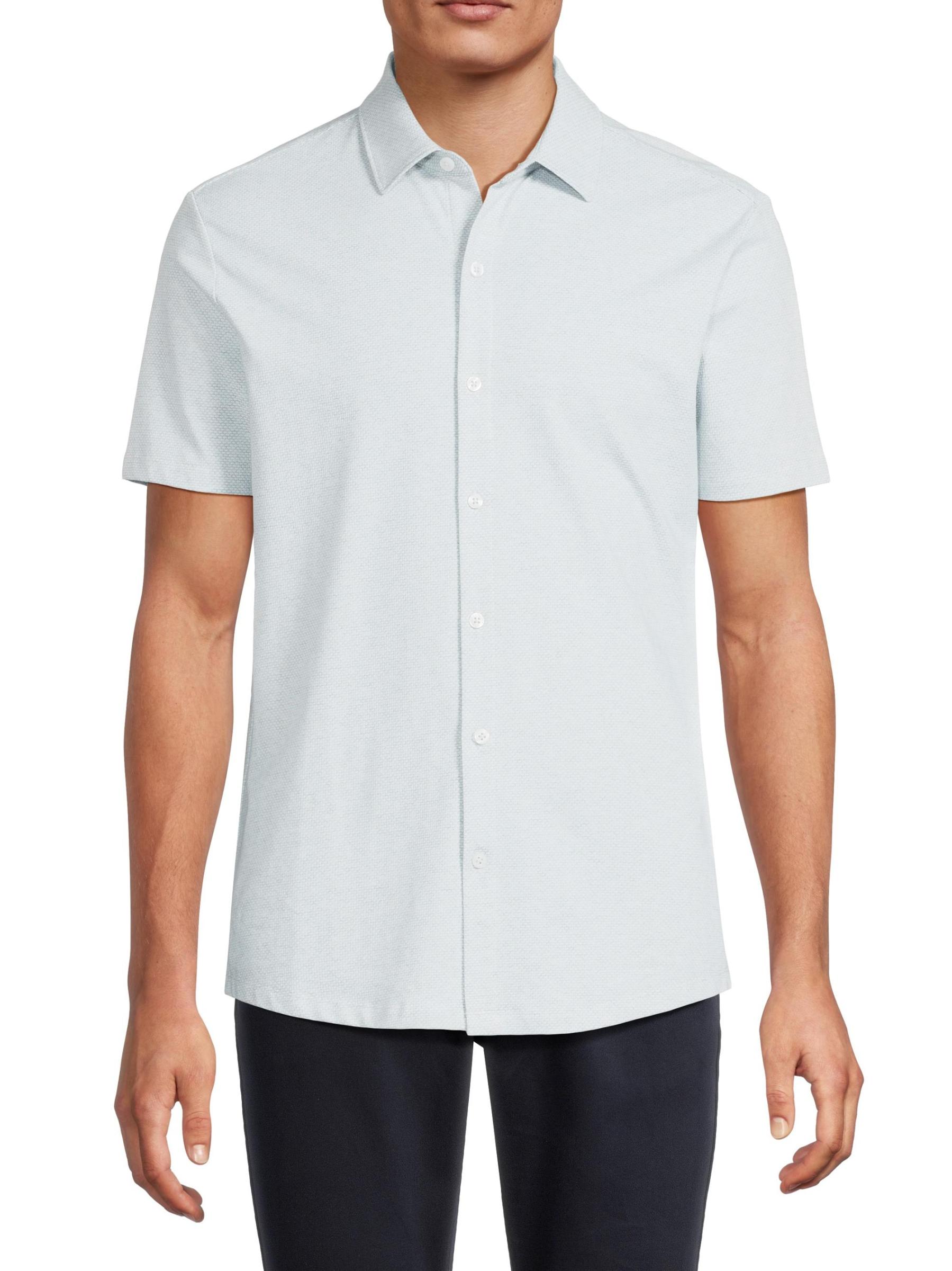 The Keyes Knit shirt from Robert Barakett highlights a spread collar, short sleeves, and a button-front placket.Spread collar Short sleeves Button front placket 48% cotton/ 40%polyester/ 12%spandex Machine wash Imported
