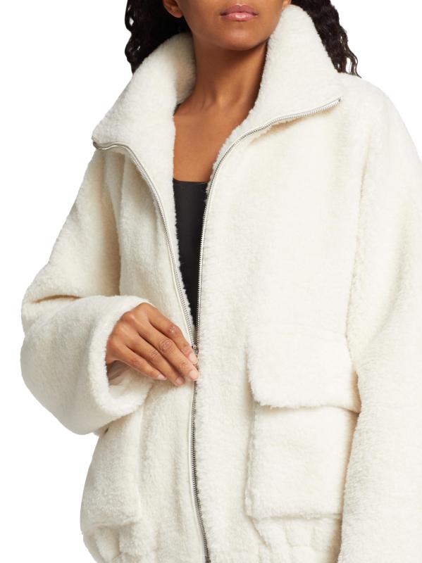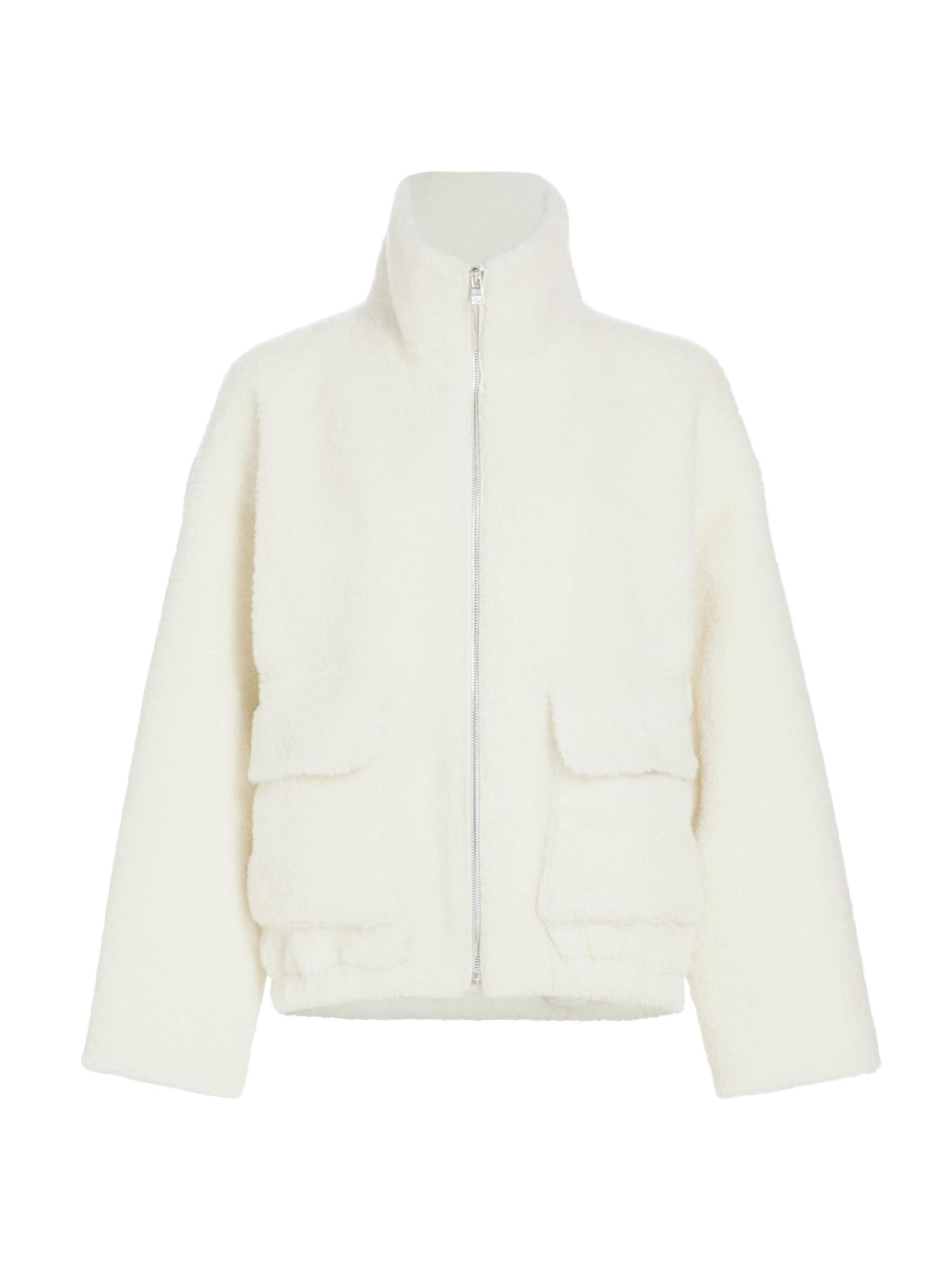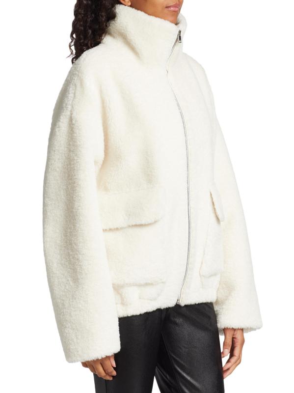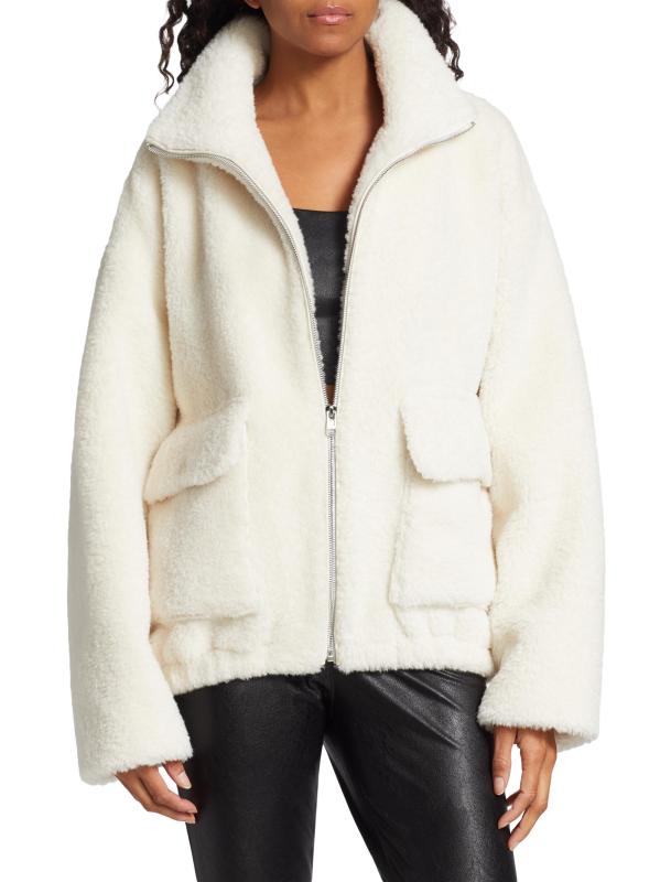 LAMARQUE's Kim jacket is crafted of plush sherpa. This lightweight piece is styled with a funnel neck and front flap pockets.