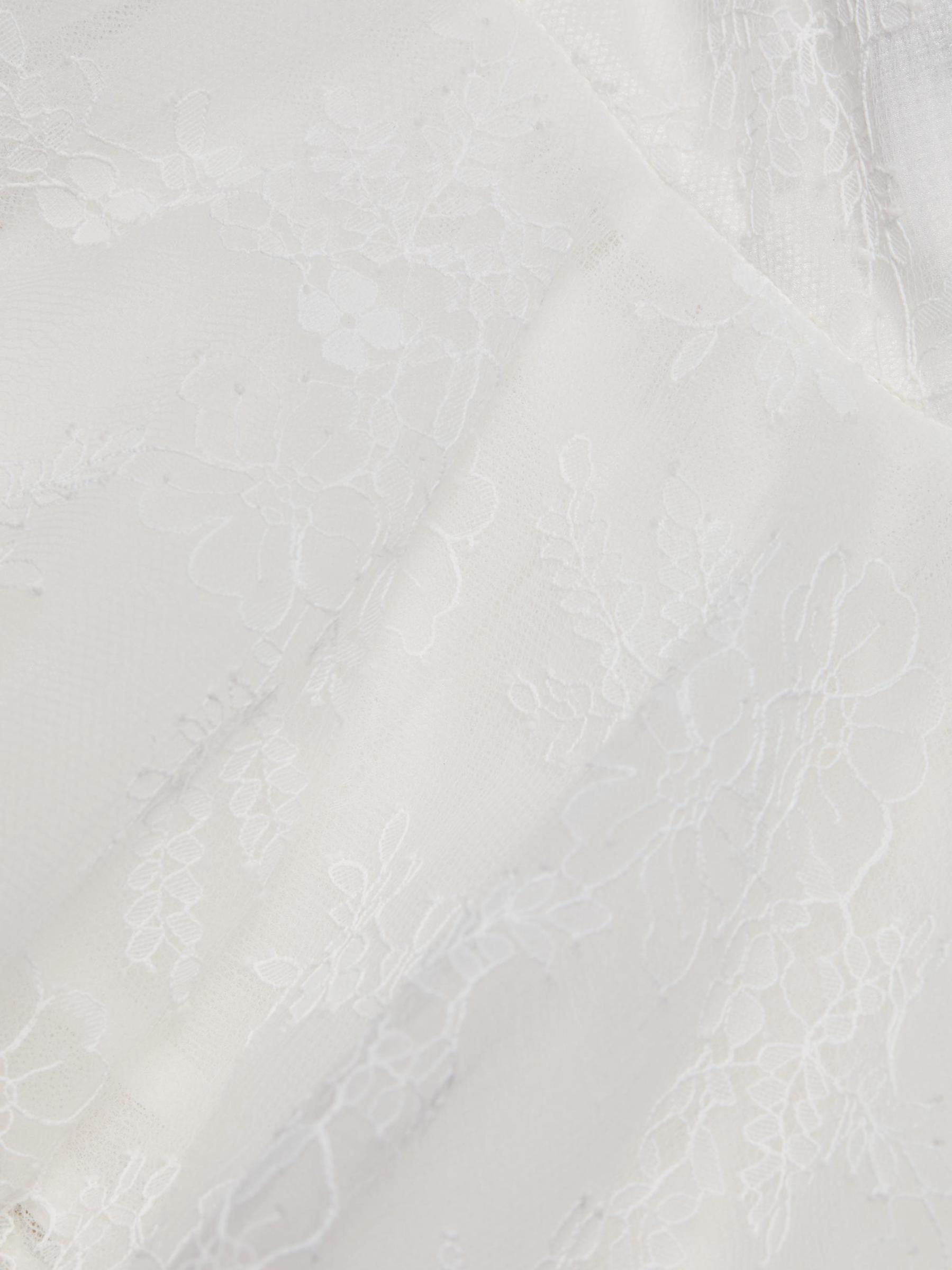 Crafted of delicate floral lace, Aknvas’ Kirsten skort is styled with a drop waist and ruffled hem.