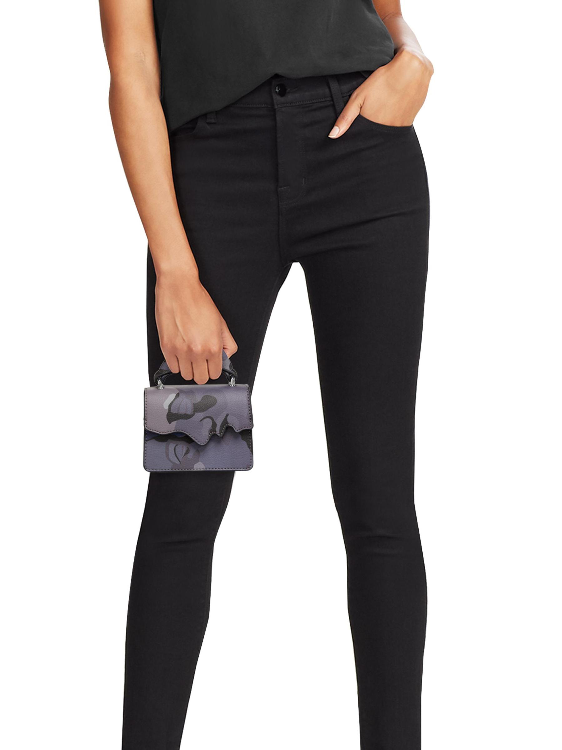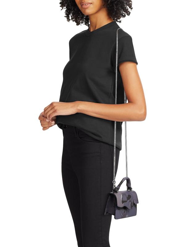 The Kissing mini bag from KidSuper highlights a faux leather design, detailed with a camouflage-inspired print that reveals the profile of two people kissing.