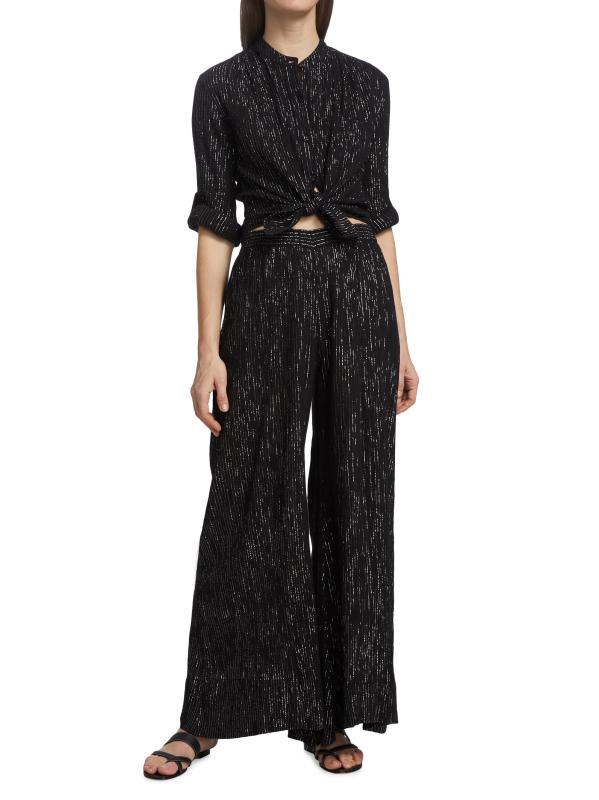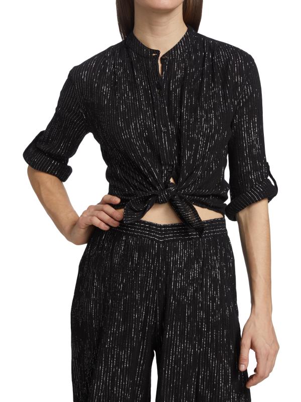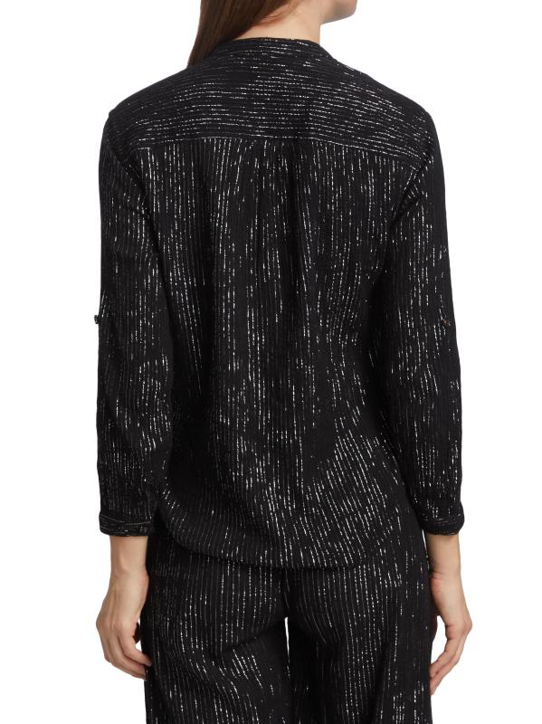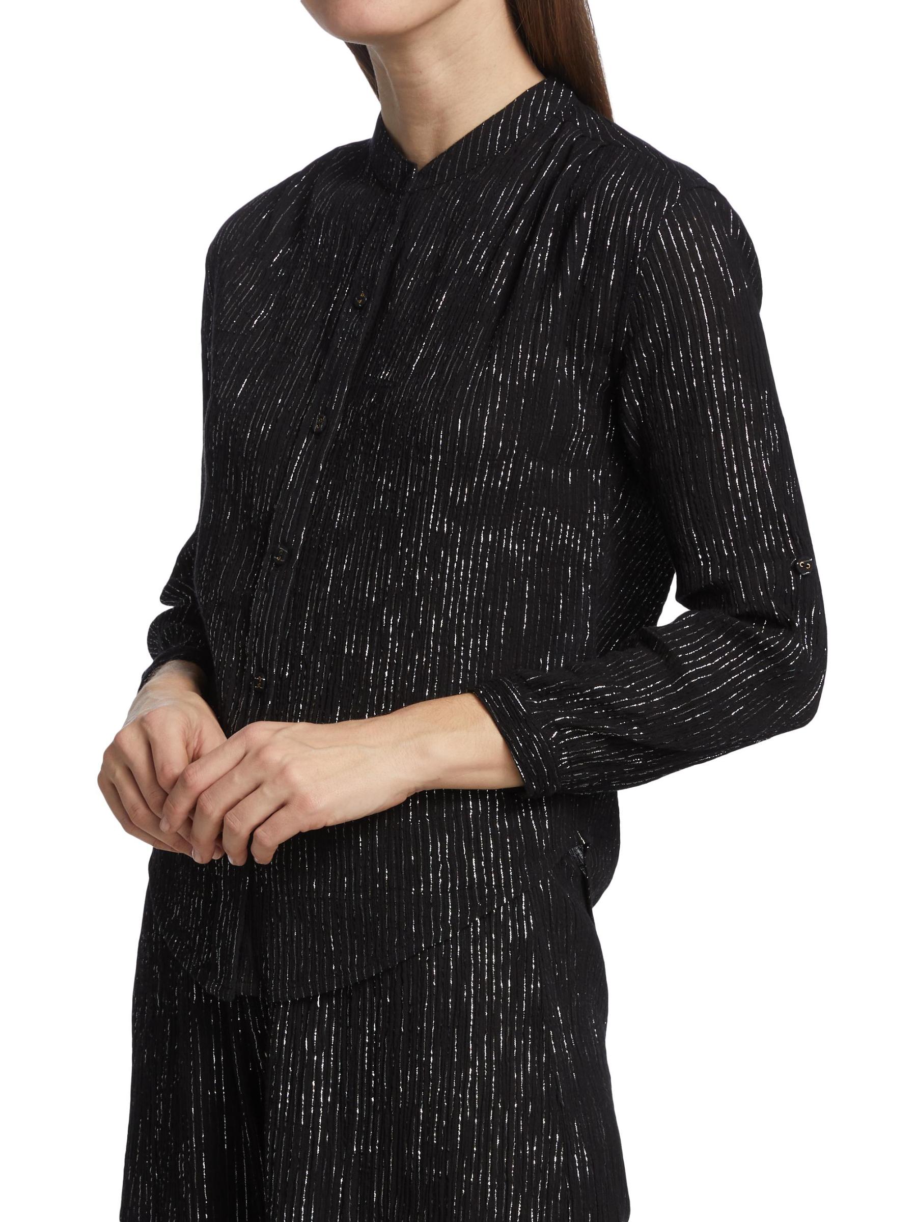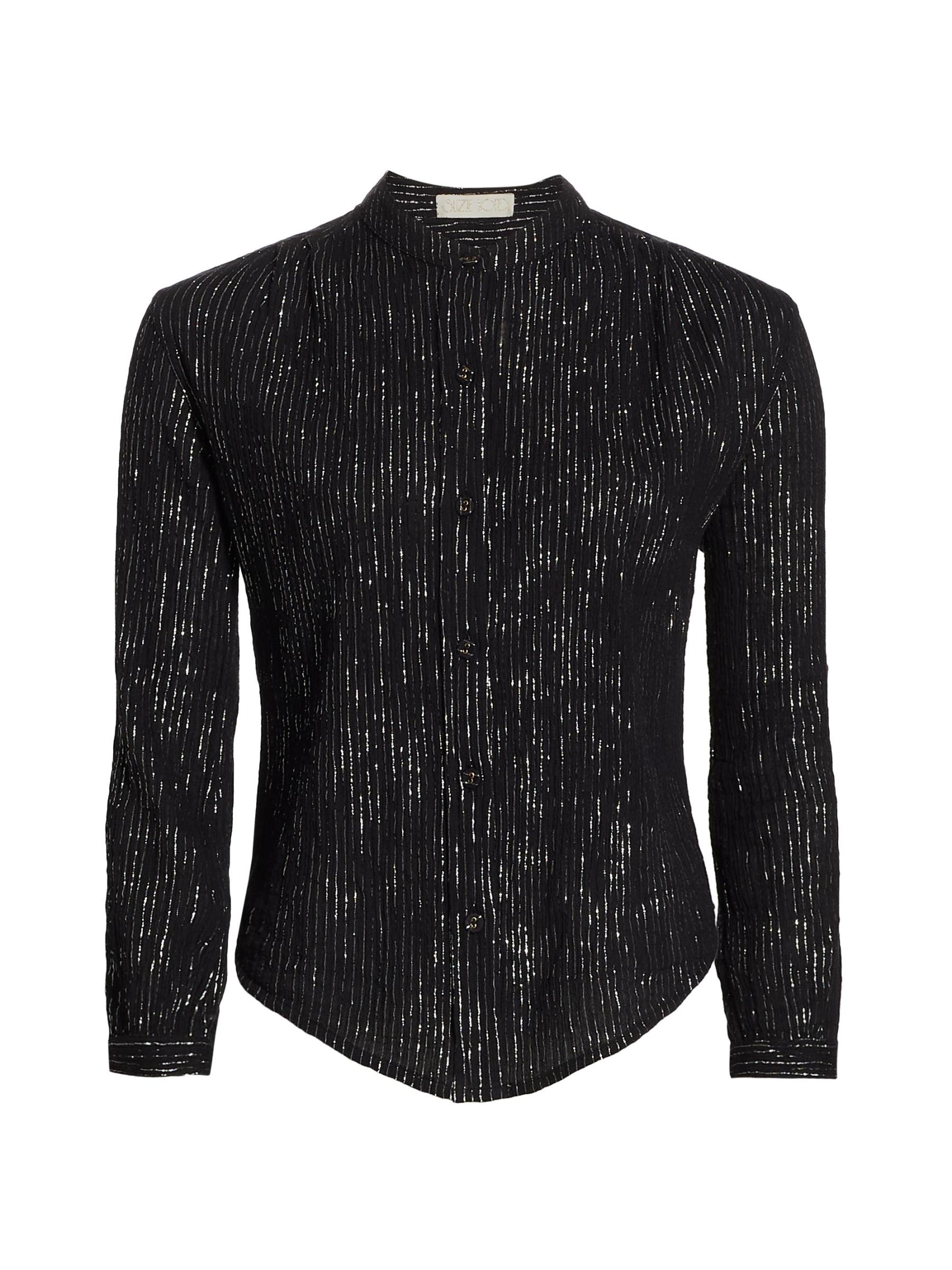 Made of cotton gauze, this version of the Koubi blouse features a metallic finish.Stand collar Long sleeves Front button closures 98% cotton/2% Lurex® metallic fibers Machine wash Imported