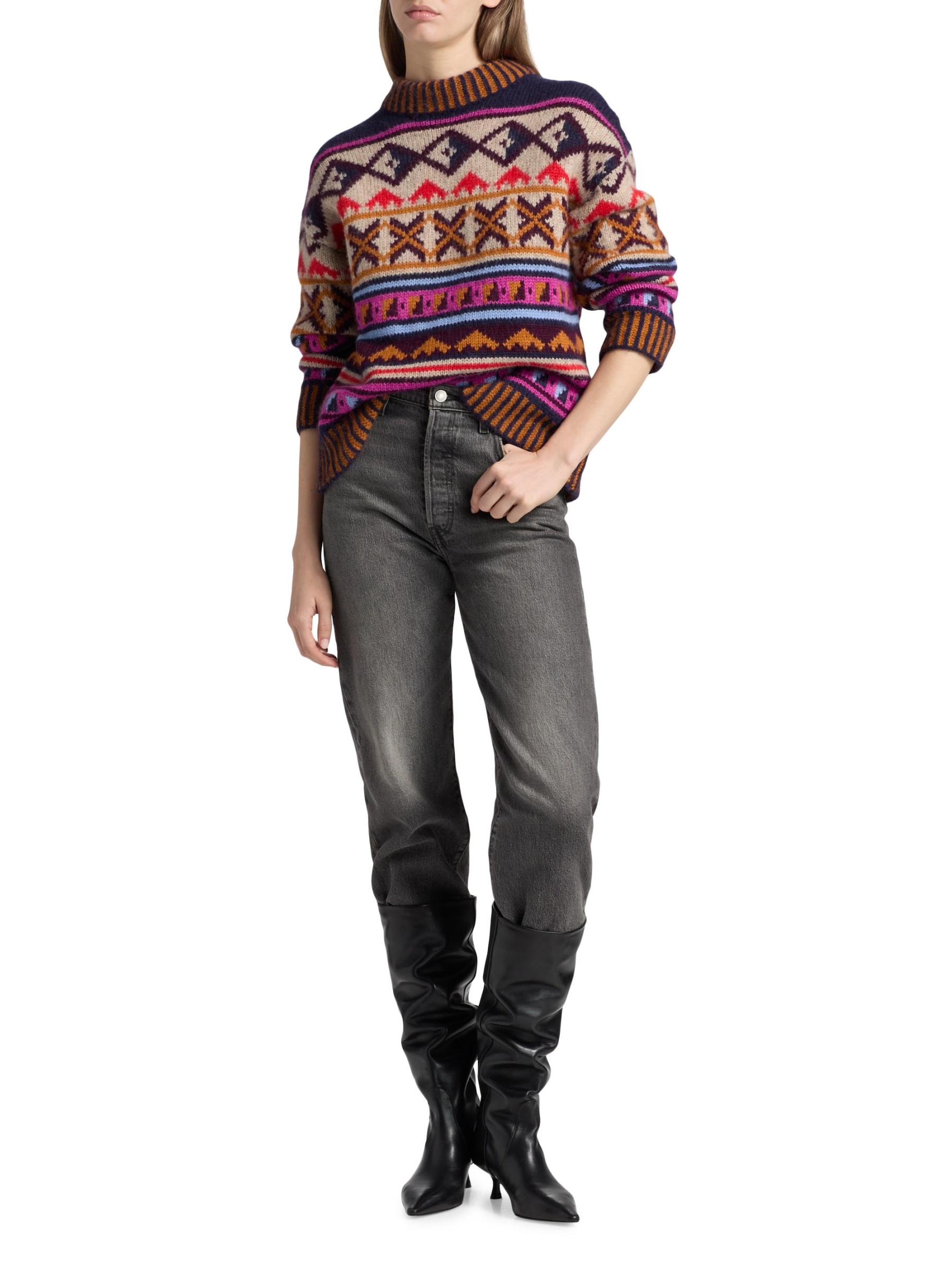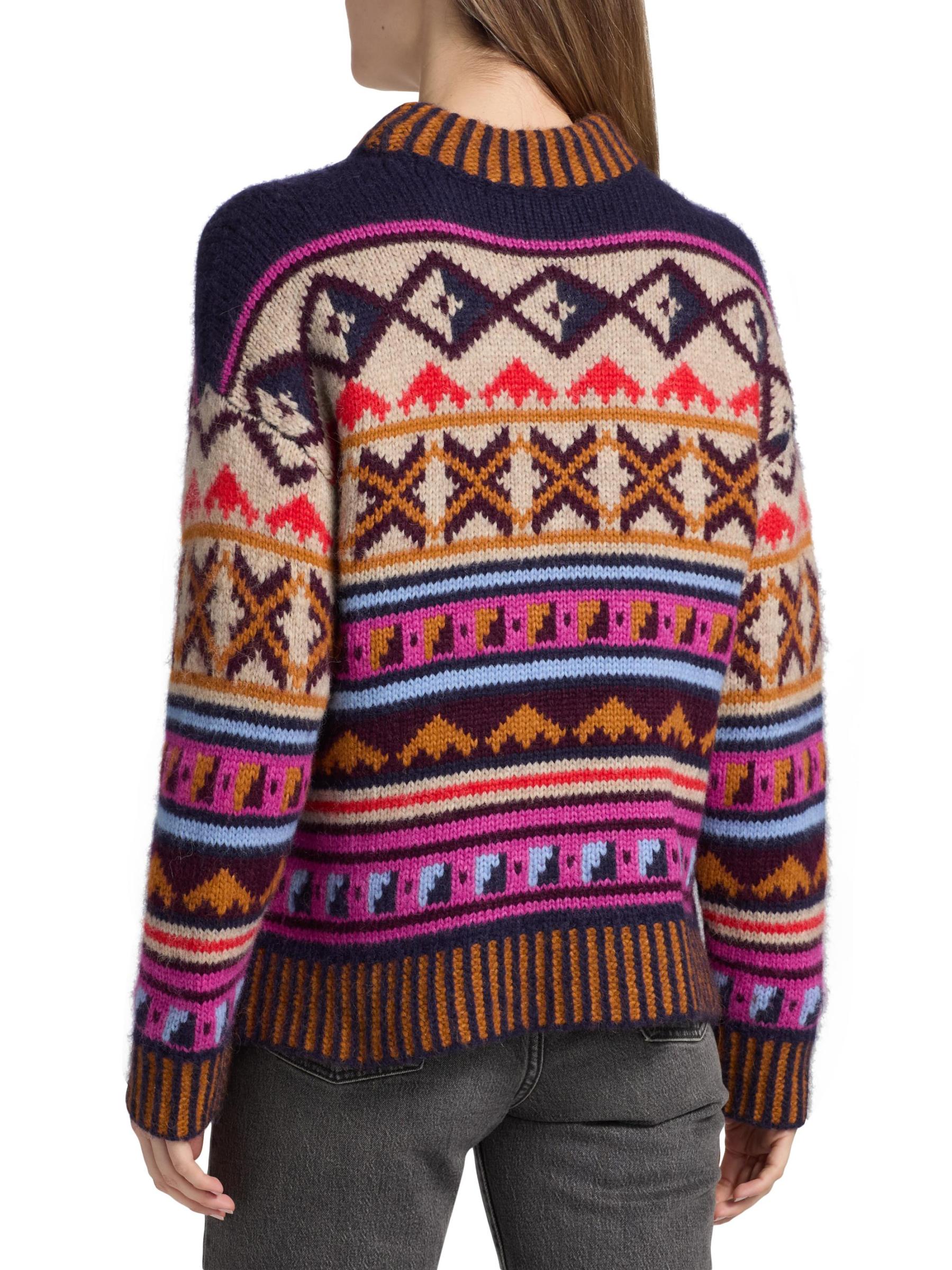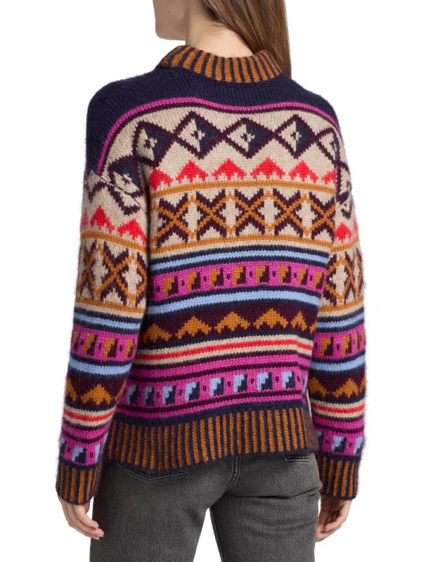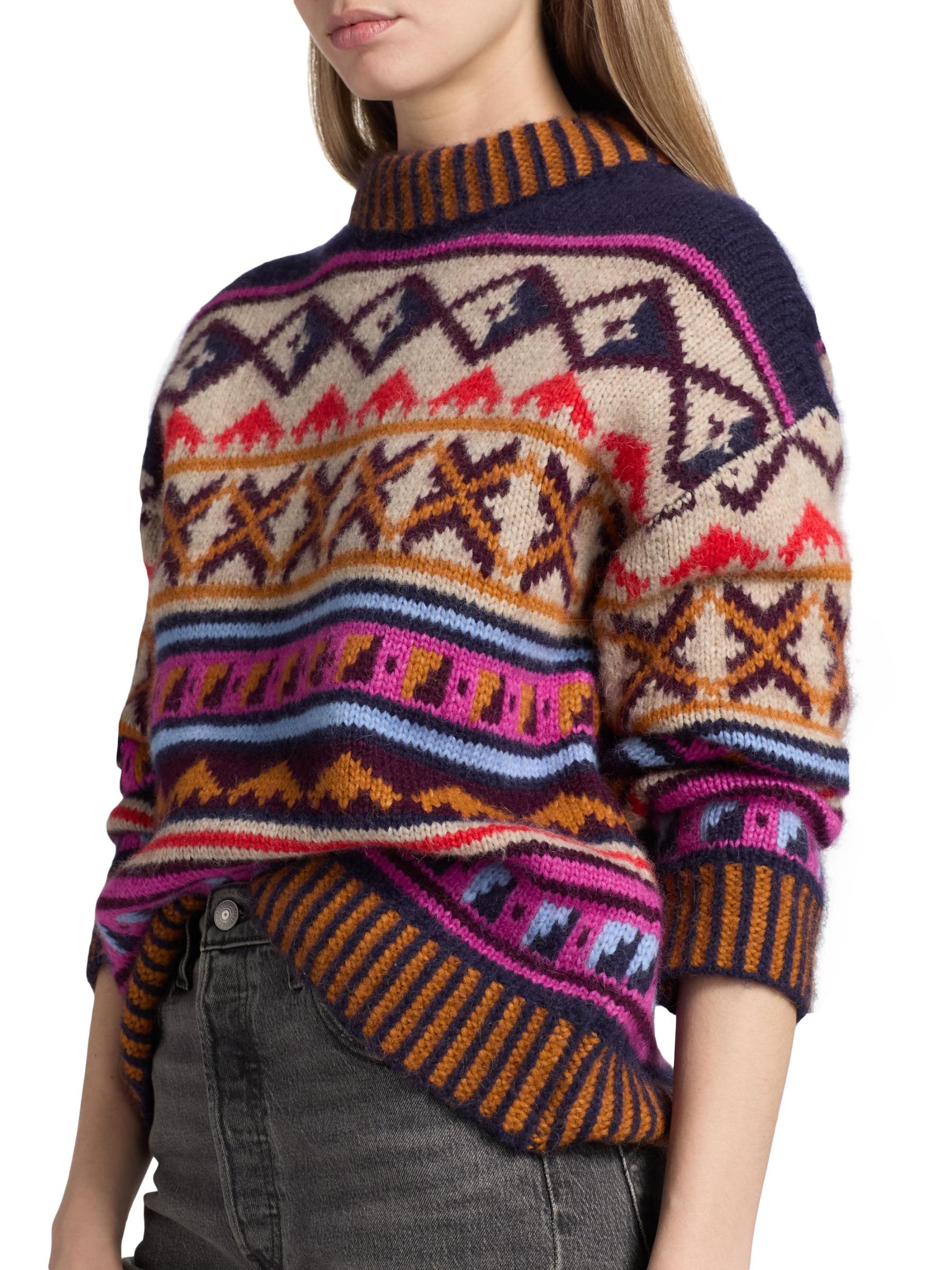 This Kravitz Candy sweater from Maria Cher, crafted of a soft alpaca blend, features a vibrant geometric design and mock turtleneck.