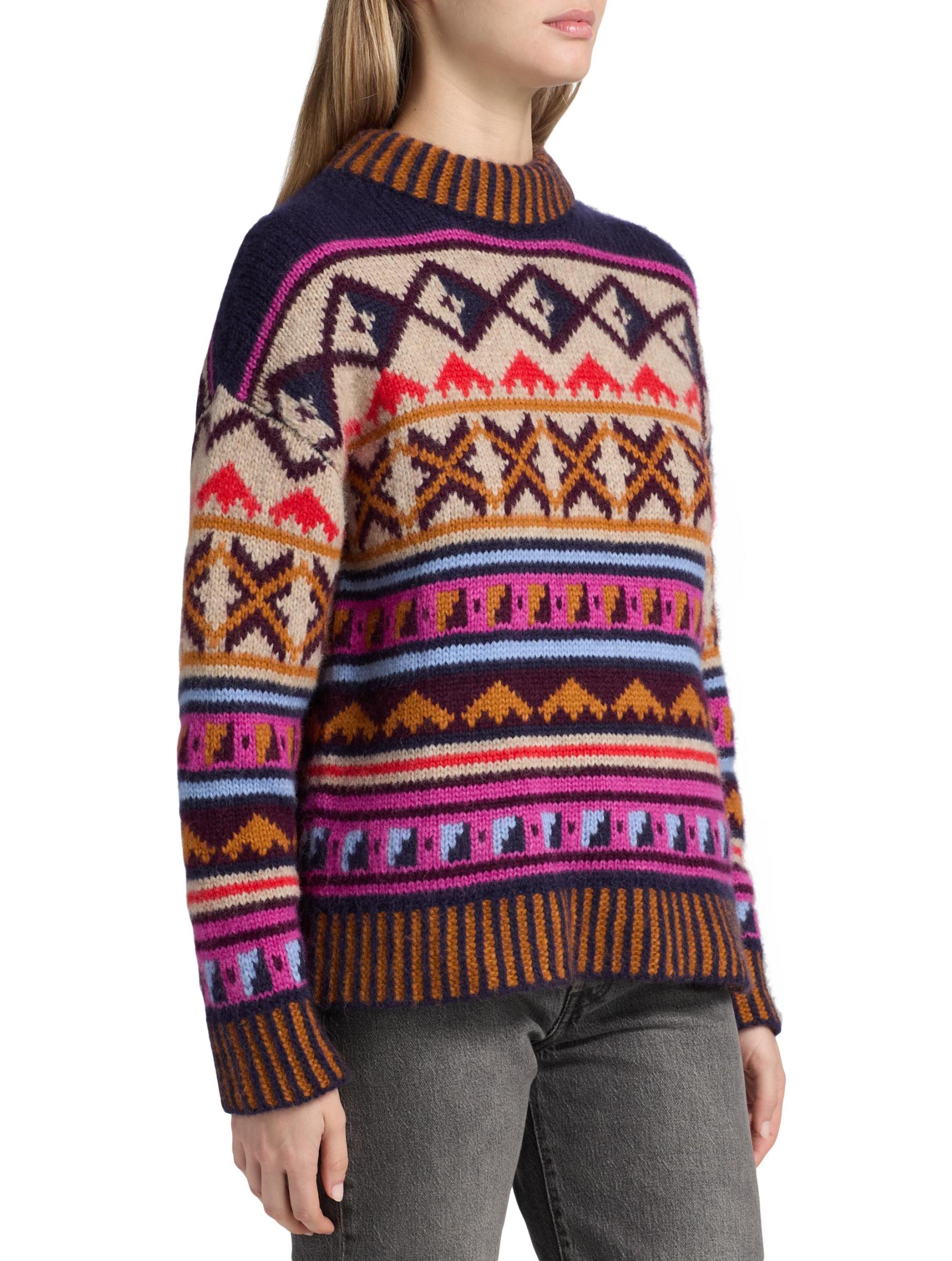 This Kravitz Candy sweater from Maria Cher, crafted of a soft alpaca blend, features a vibrant geometric design and mock turtleneck.Mock turtleneck Long sleeves Rib-knit trim Pulls over 70% alpaca/23% polyamide/7% merino wool Hand wash Imported
