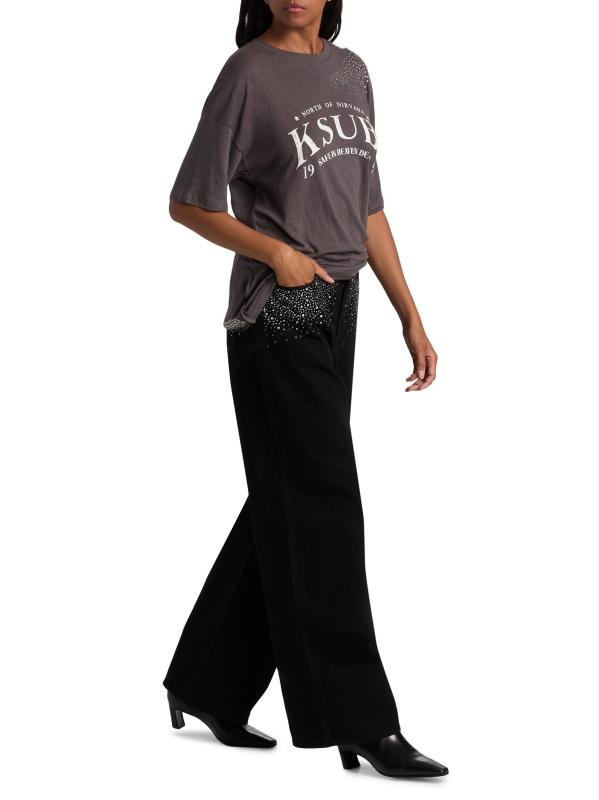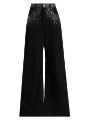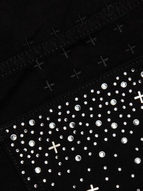 From the Neo-Nostalgia collection. Ksubi's Ksuper baggy jeans flaunt an exaggerated wide-leg silhouette with super low-rise and a full length. Crafted from rigid premium denim, this style includes scattered hotfix diamontés, studs, and signature cross details at the waistband.