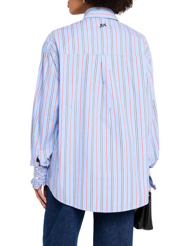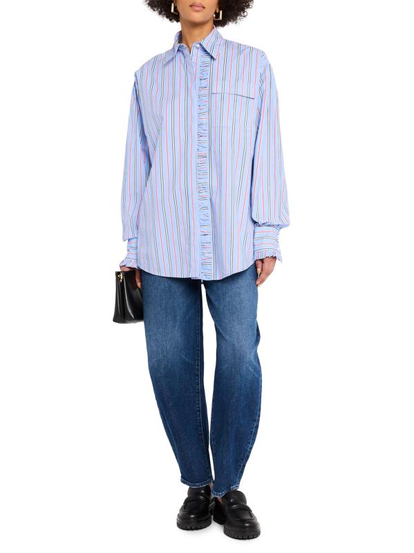 Damson Madder’s Kylie striped cotton shirt features a ruffled placket and cuffs with a monogram-embroidered back.