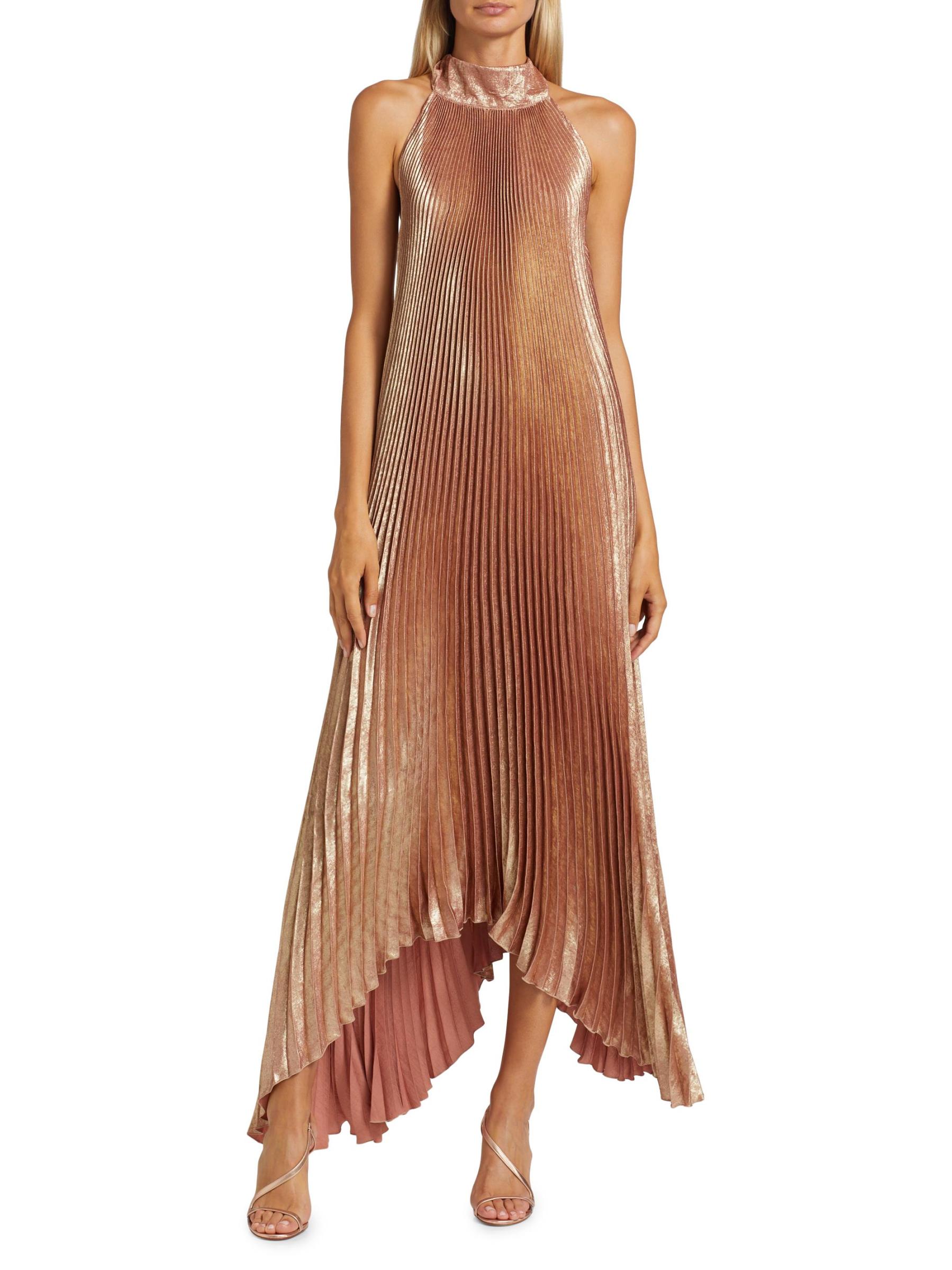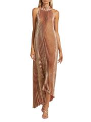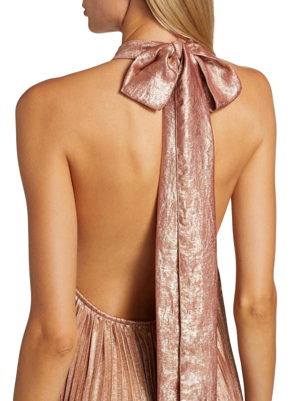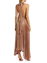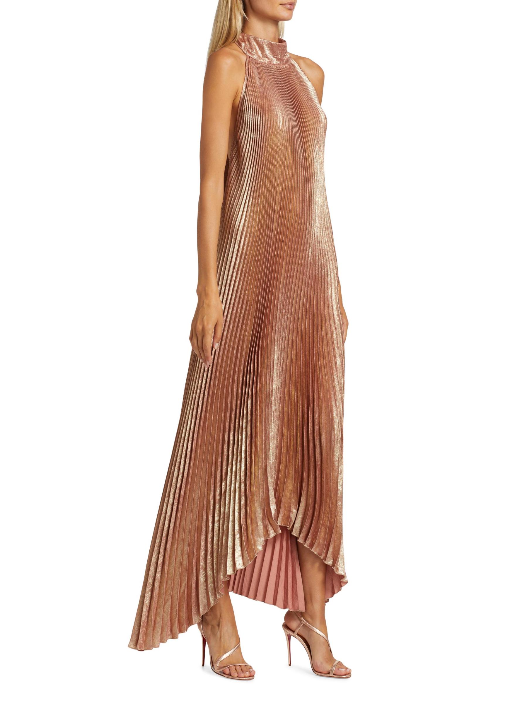 La Fete Olympia Metallic Pleated Halterneck Gown
