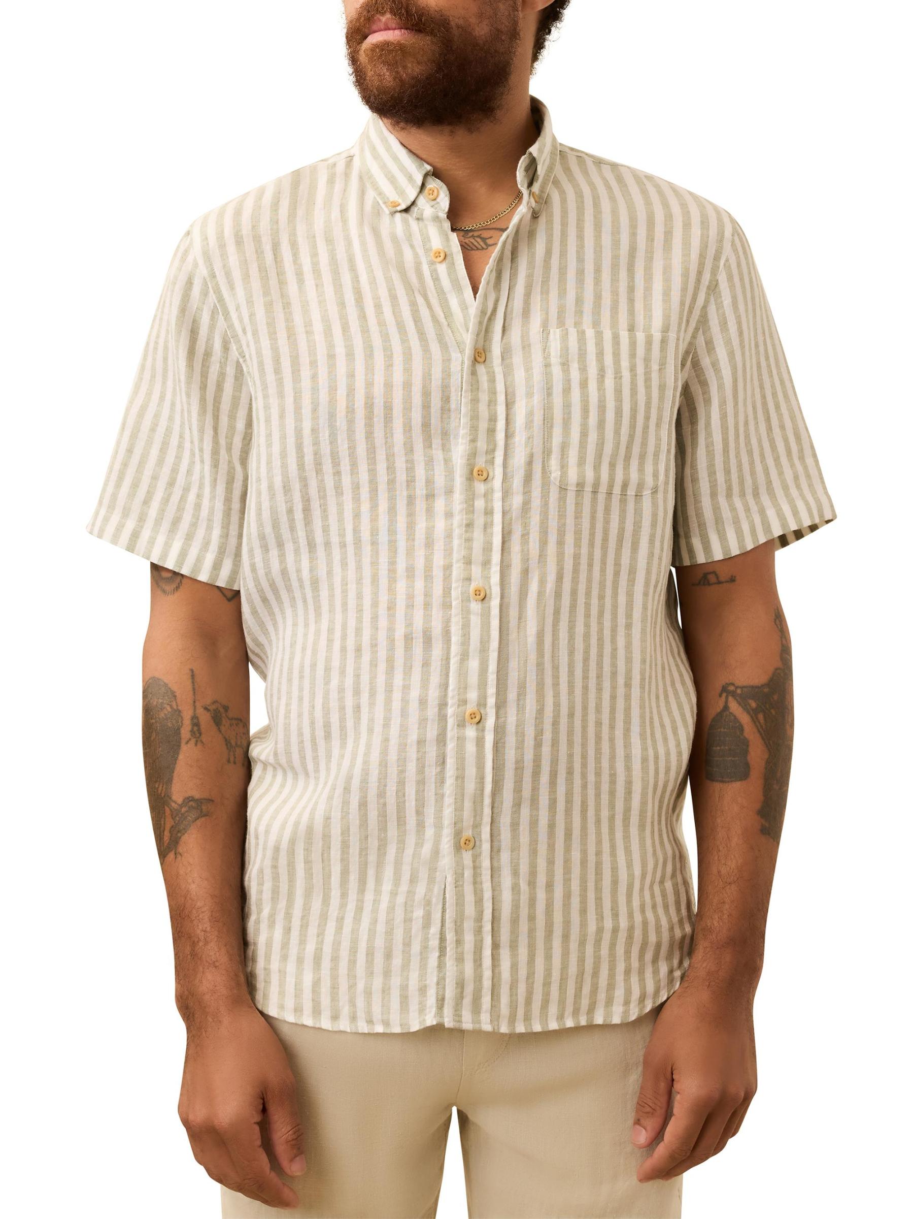 Crafted of linen, the Laguna short-sleeve shirt from Faherty Brand is crafted of striped lightweight linen.