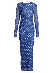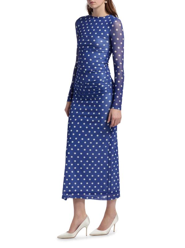 From Le Fleur Collection. Aston Studio's Ezli mesh maxi dress is designed with polka dots and ruching at the waist.