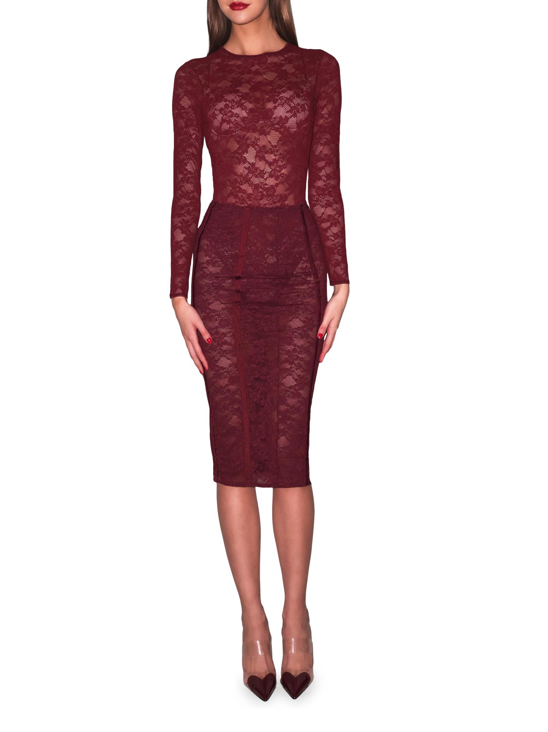 Cut for a form-fitting shape, Fleur du Mal's Le Stretch pencil skirt features a sheer floral lace design and stretch-silk paneling.