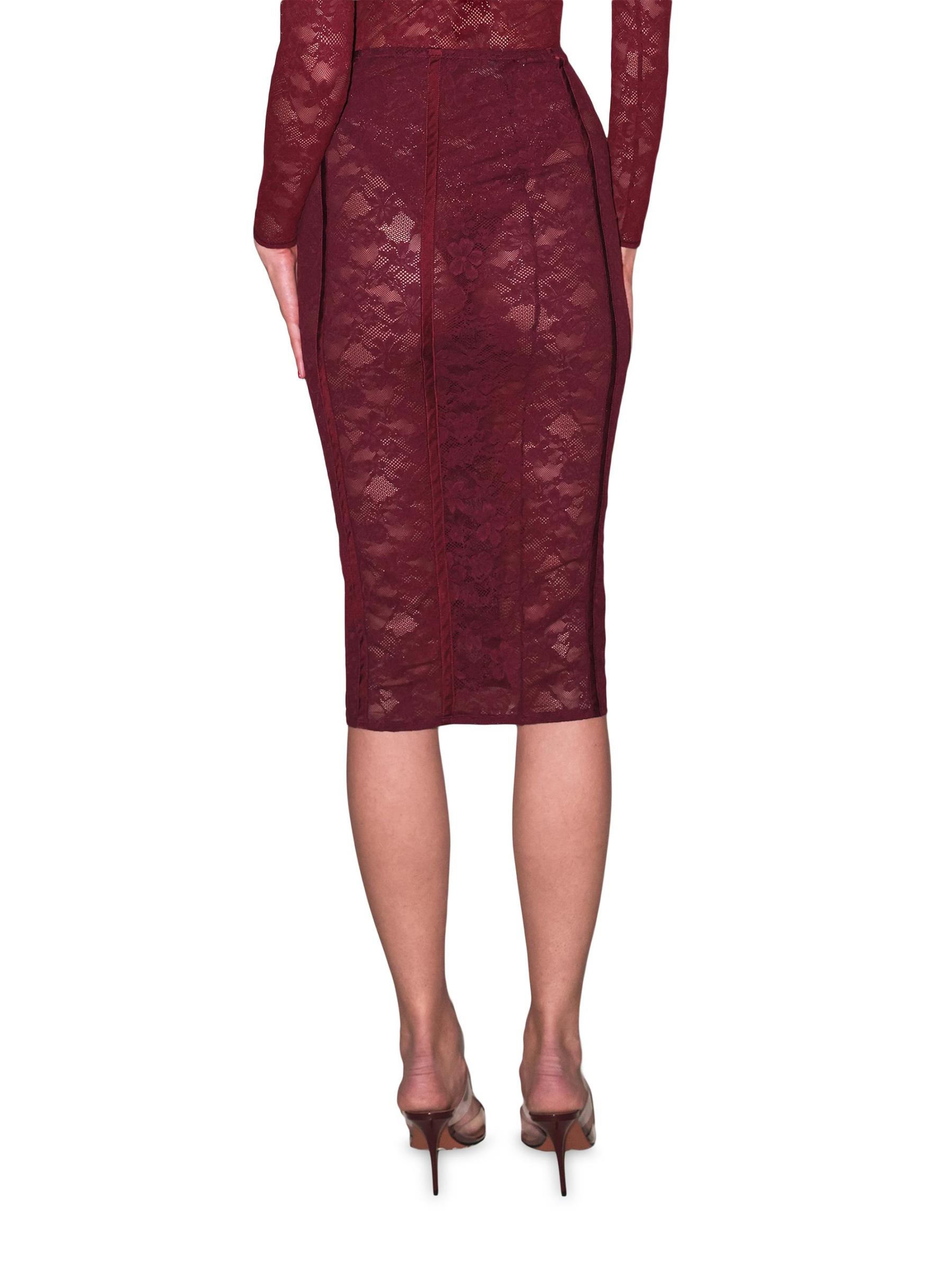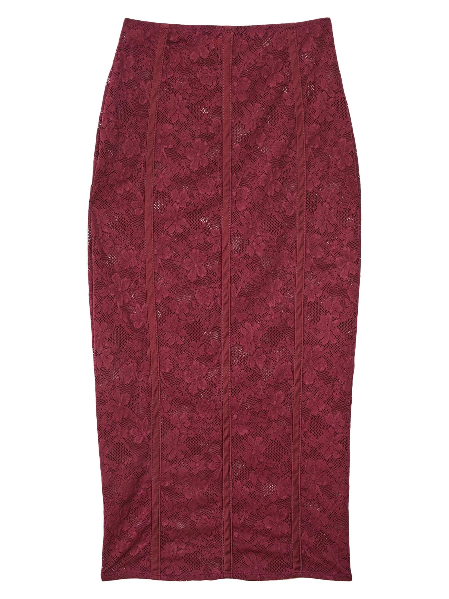 Cut for a form-fitting shape, Fleur du Mal's Le Stretch pencil skirt features a sheer floral lace design and stretch-silk paneling.Elasticized waist Pulls on 66% nylon/34% spandex Combo: 95% silk/5% spandex Hand wash Imported