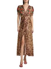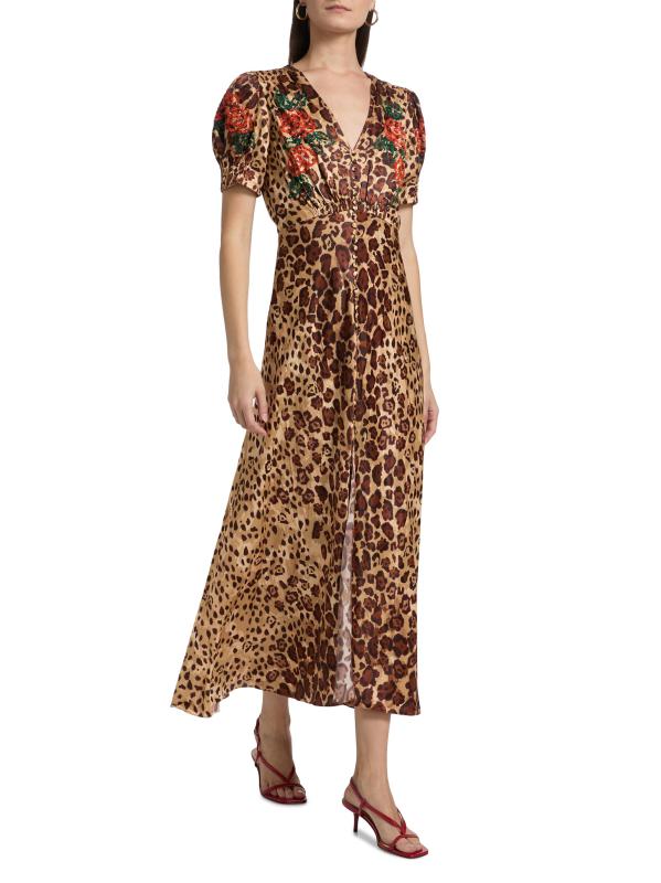 Lea Floral Cheetah-Printed Midi-Dress