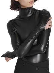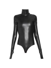 Leather-Effect Mock Turtleneck Bodysuit