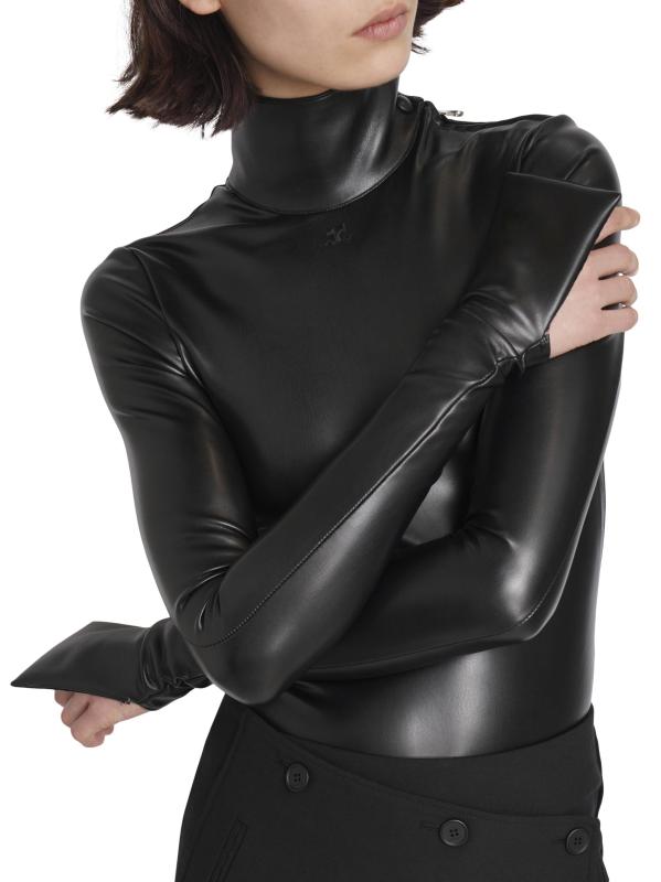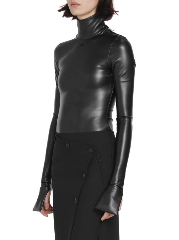 Featuring a mock turtleneck and long sleeves, this Courreges bodysuit is treated with a slick leather-effect finish.