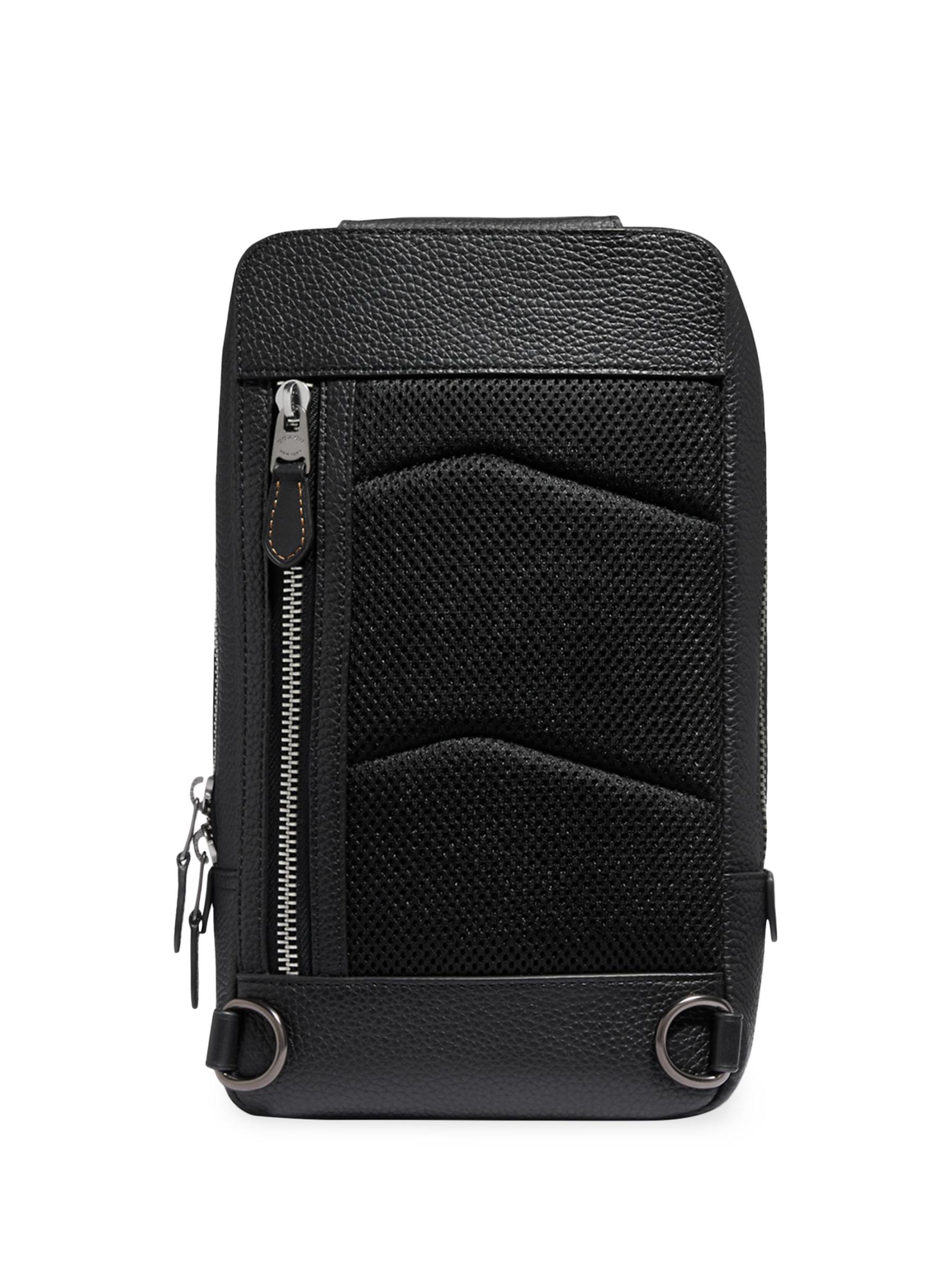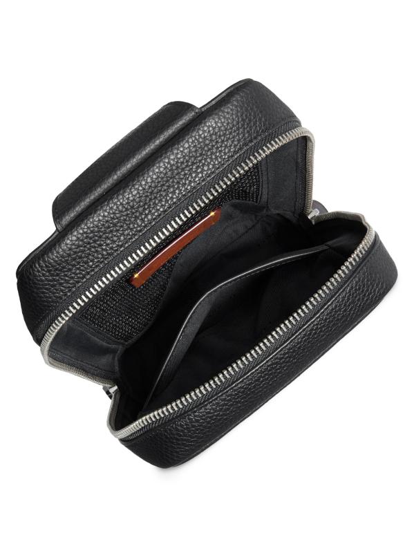 This leather pack features a top zipper closure and a front zip pocket.Top zipper closure Front zip pocket 100% leather Wipe clean Imported
