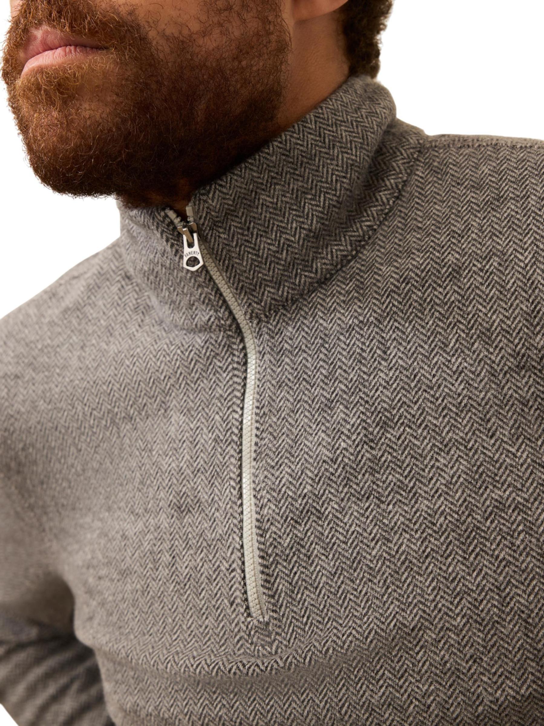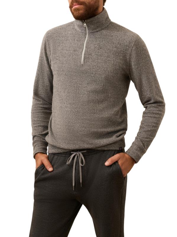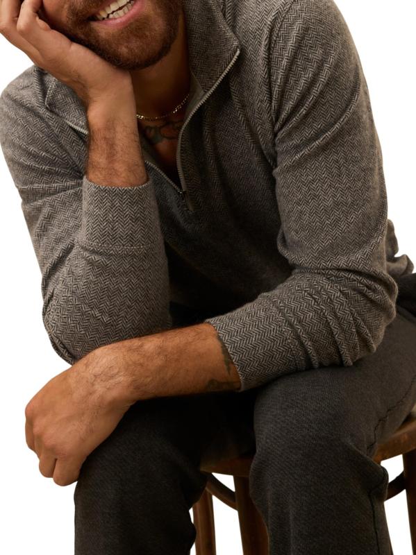 The Legend quarter-zip sweater from Faherty Brand is crafted of a stretch cotton blend and styled with a herringbone pattern.