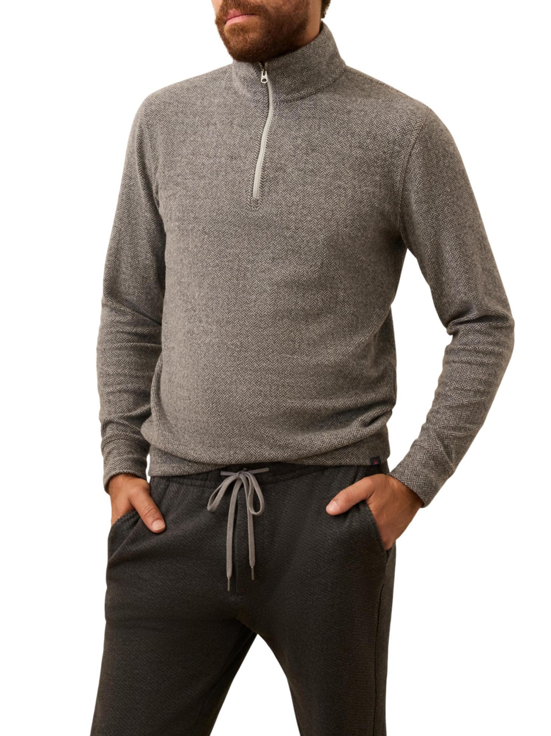 Legend Herringbone Stretch-Cotton Quarter-Zip Sweater