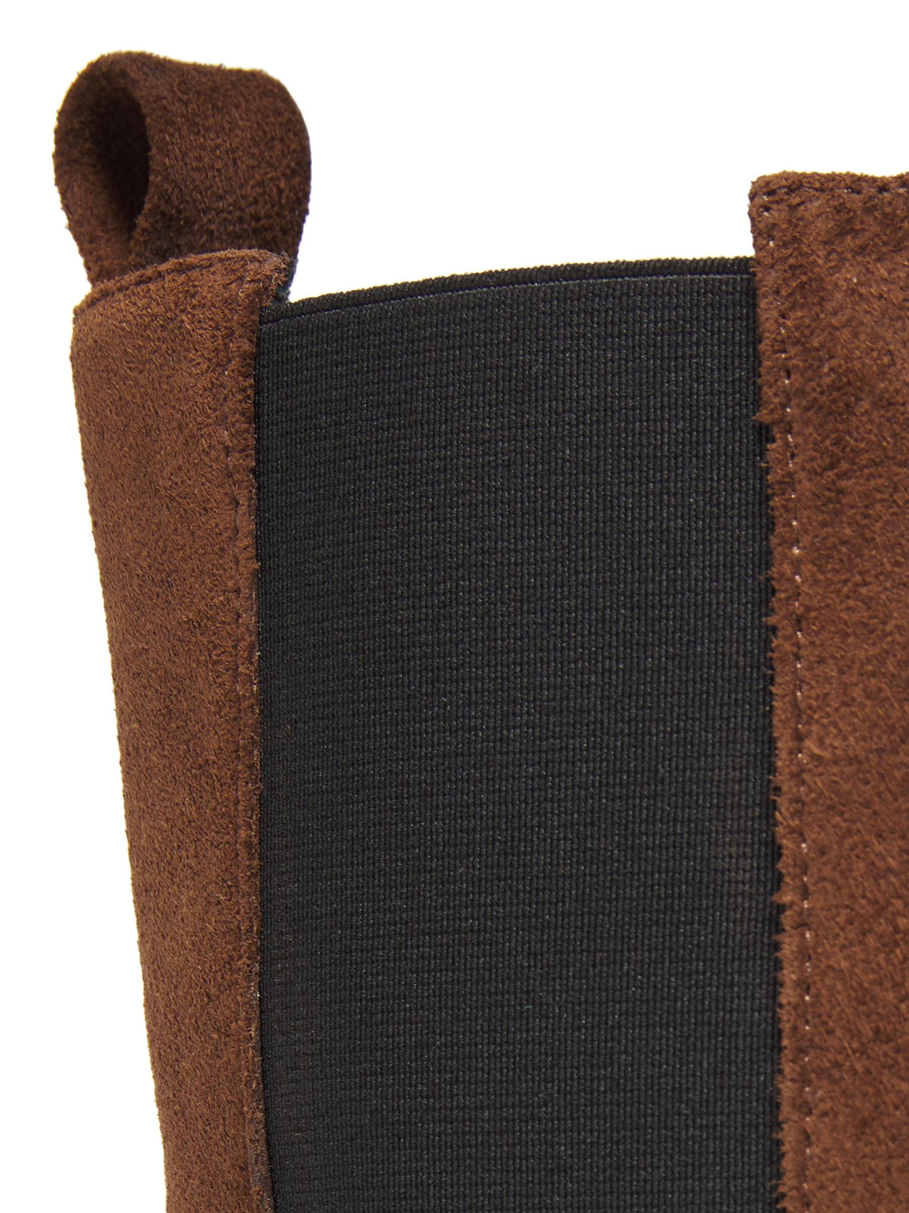 Made in Italy of suede, these Loe ankle boots from A.Emery are styled with elasticized side gores and a stacked block heel.Almond toe Pulls on Suede upper Leather lining Leather sole Made in Italy