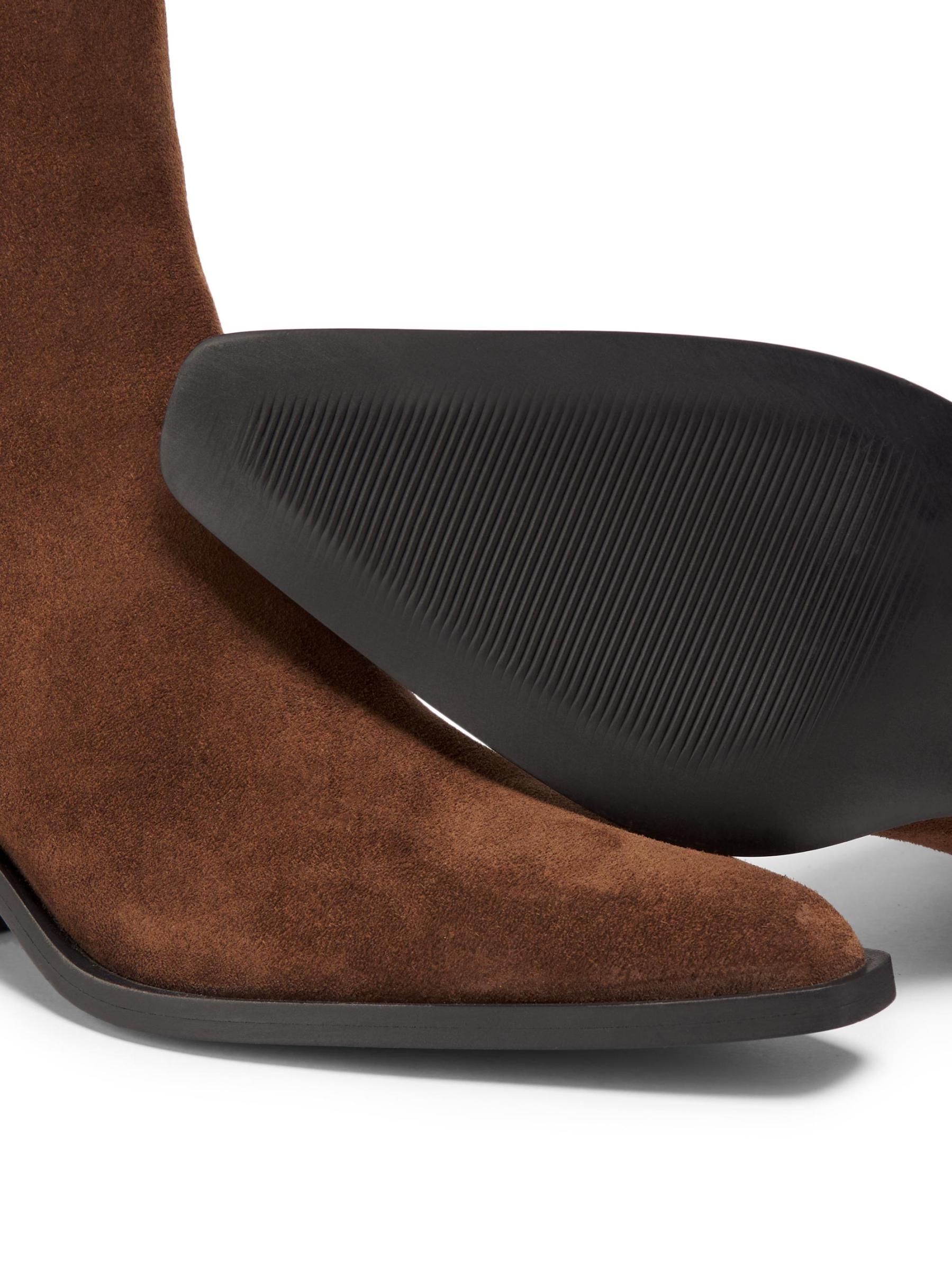 Made in Italy of suede, these Loe ankle boots from A.Emery are styled with elasticized side gores and a stacked block heel.
