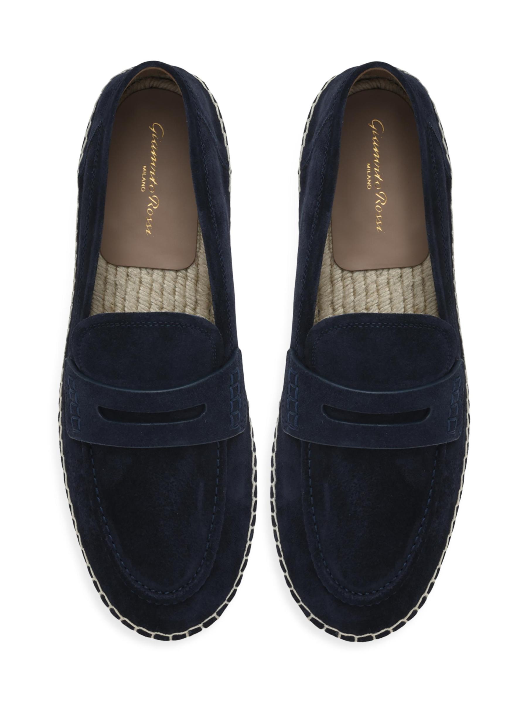 Crafted of soft suede, the Lido penny loafers from Gianvito Rossi sit atop a woven espadrille midsole.