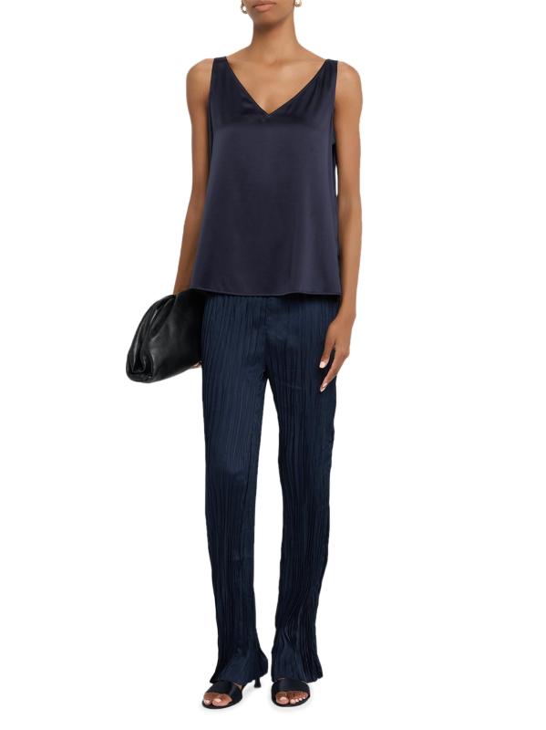 Lilian Pleated Satin Straight-Leg Pants