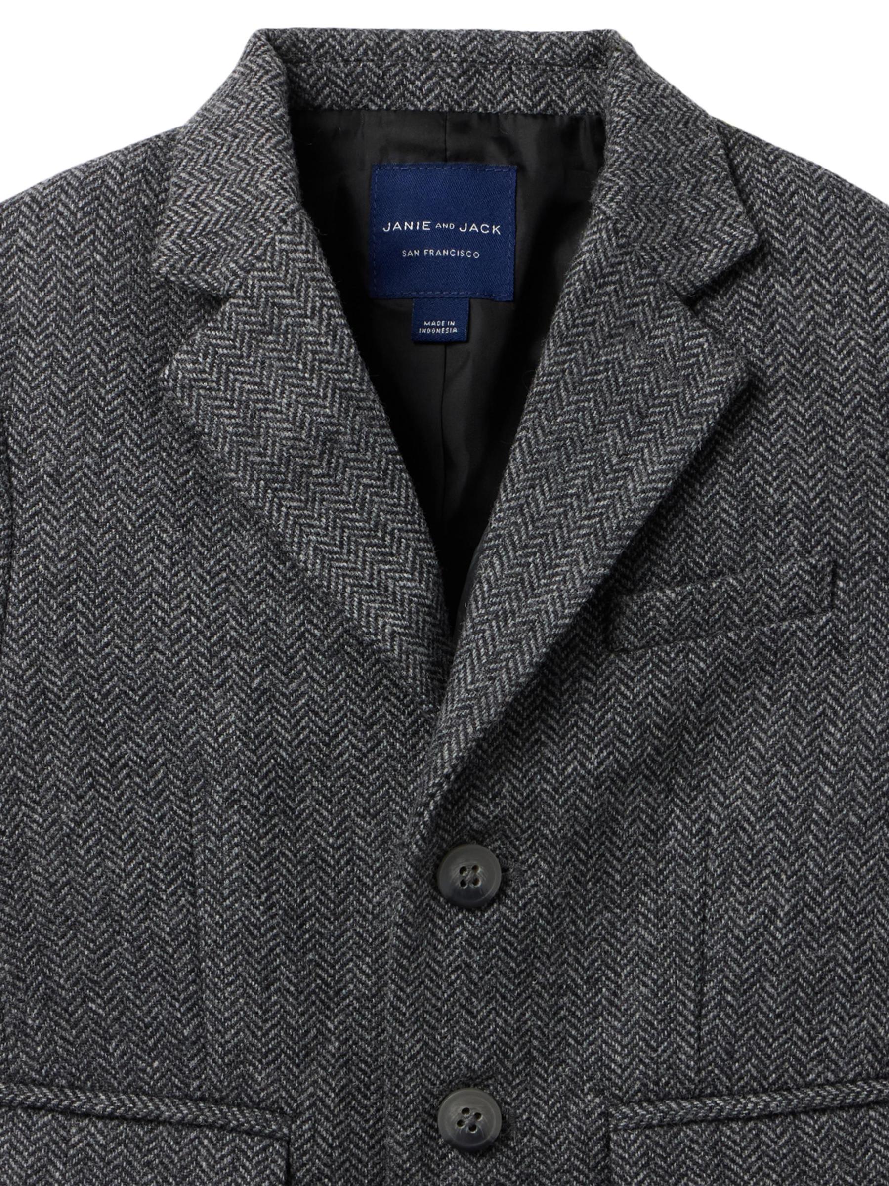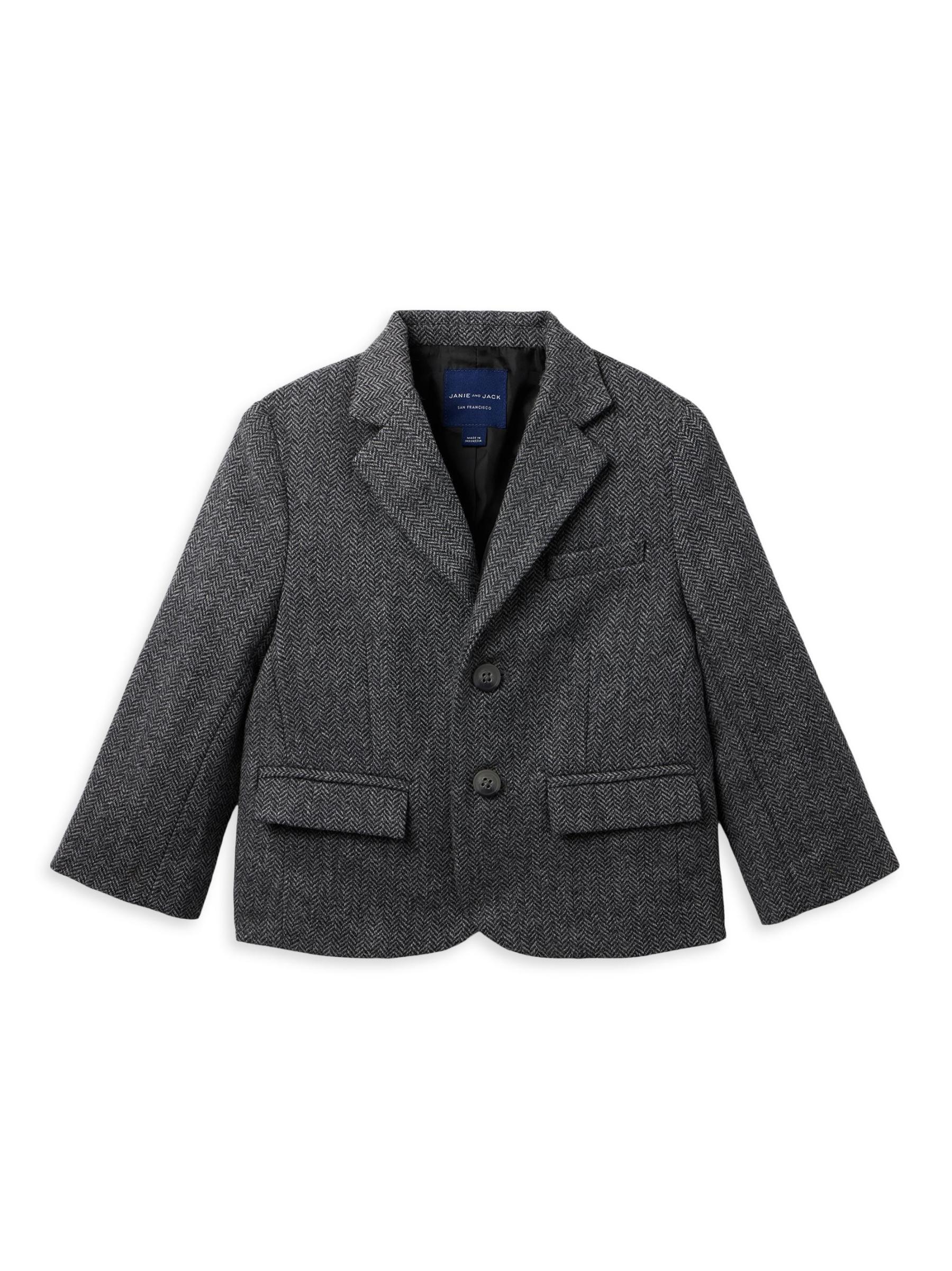 Janie and Jack's blazer in classic herringbone features button details and front pockets. The suit pants feature a herringbone pattern. Lining: 100% polyester.Machine wash. Imported.