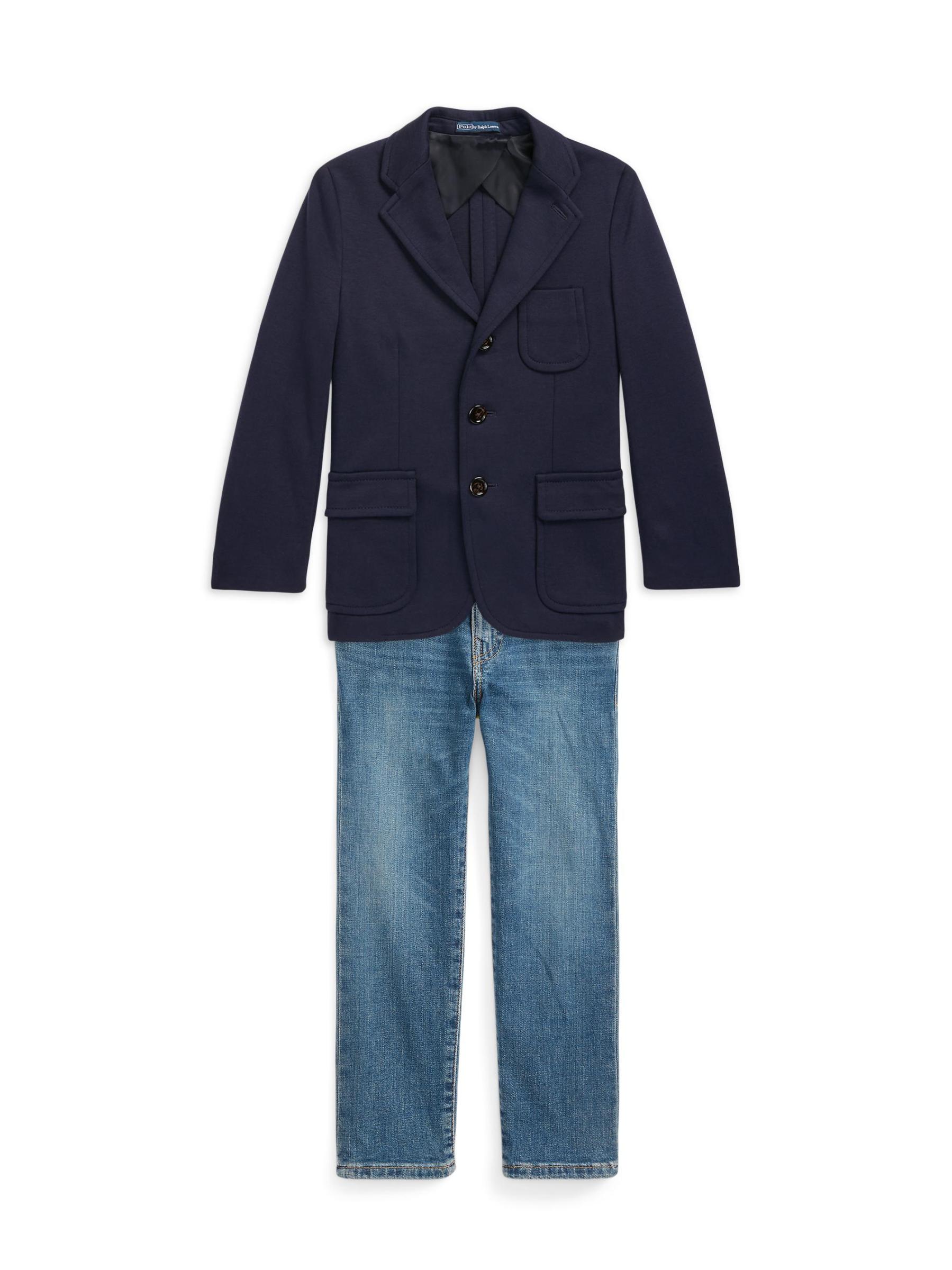 Inspired by polo soft jacket, this sport coat unites cotton-blend interlock with a silhouette that puts a modern spin on classic preppy style.
