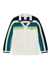 Crafted of cotton, this Casablanca button-front shirt is knit with a crochet design and accented with a multicolored striped pattern.Camp collar Long sleeves Front patch pockets Button front closure 100% Cotton Trim: 100% viscose Machine wash Imported