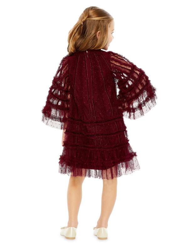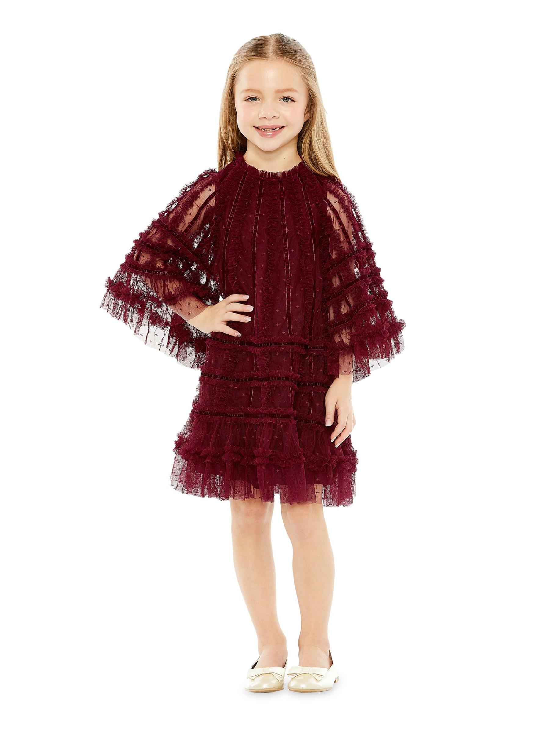 Little Girl s Girl s Velvet-Trimmed Ruffle Minidress