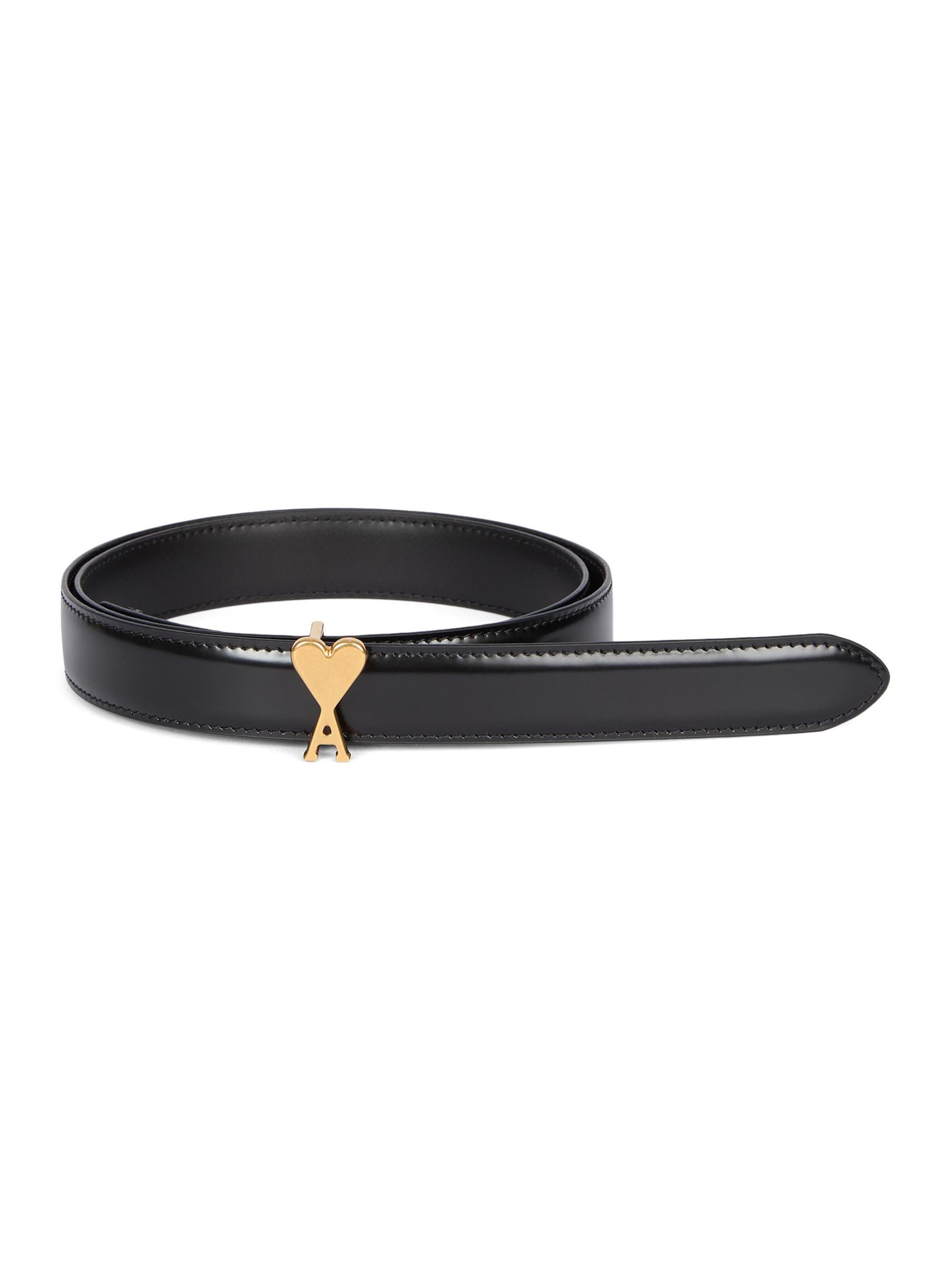 AMI Paris’ smooth leather belt is styled with a goldtone logo buckle.