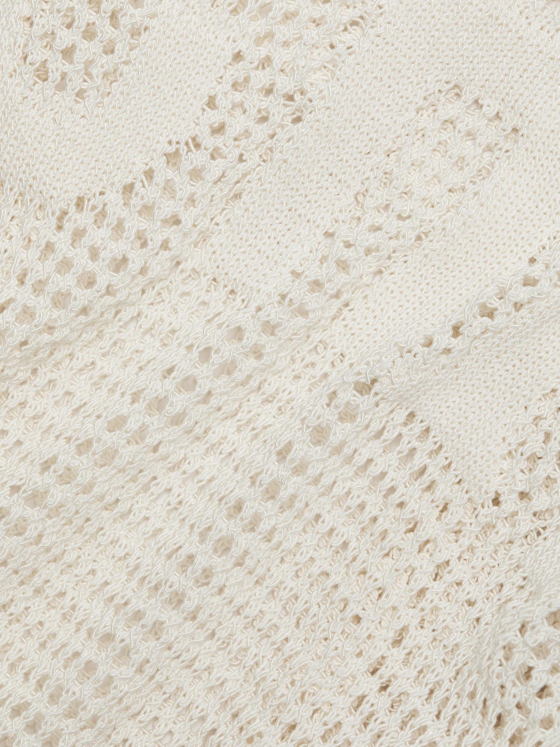Moschino Jeans' mesh stretch sweater showcases a classic crewneck, a tonal logo at the chest, and a lightweight cotton blend.