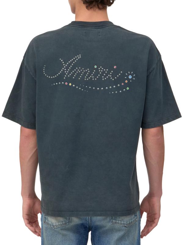 Crafted of cotton, this oversized crewneck T-shirt from Amiri features studded logo script at the front and back.Crewneck Short sleeves Pulls over 100% Cotton Dry clean Made in Italy