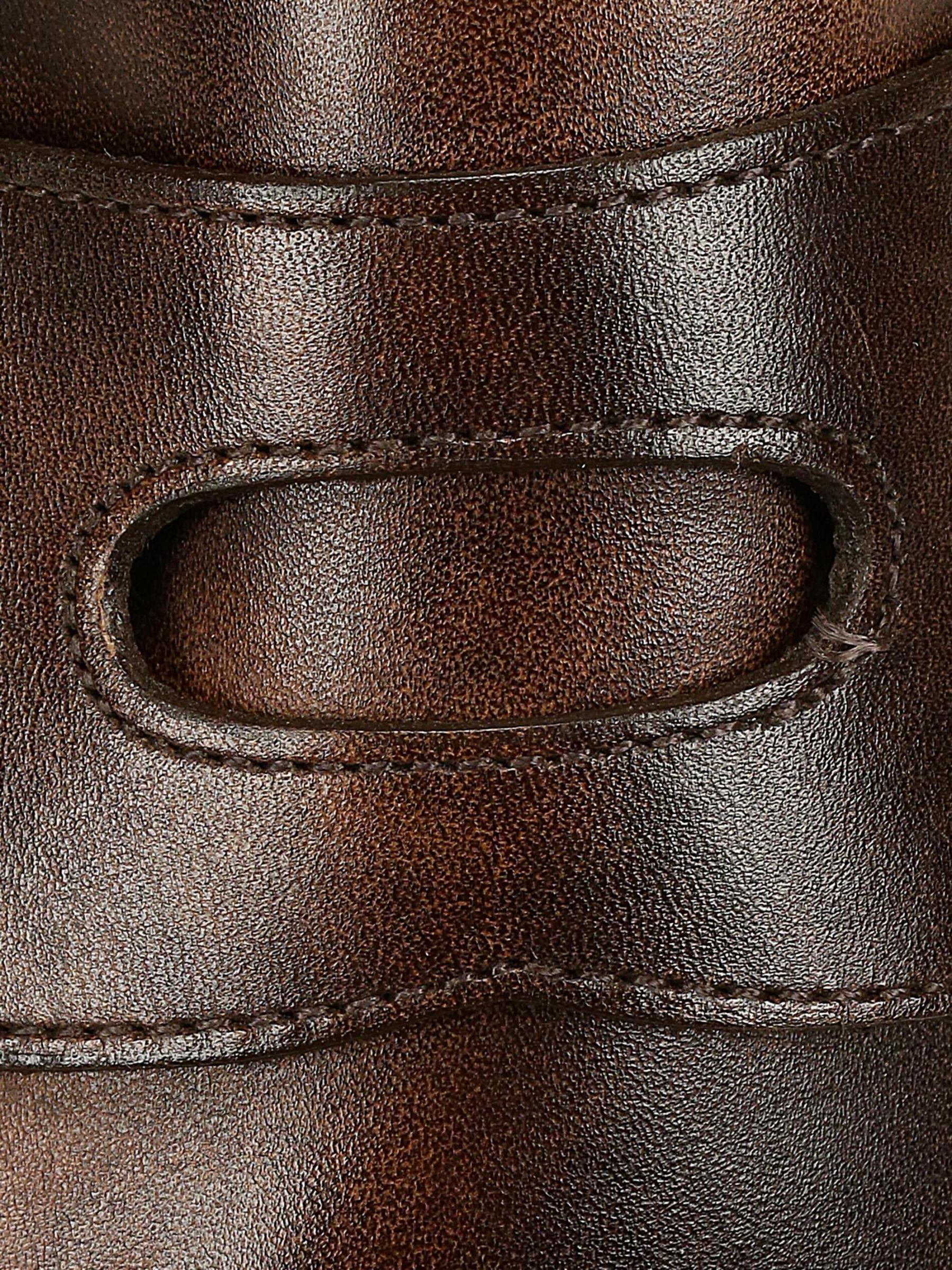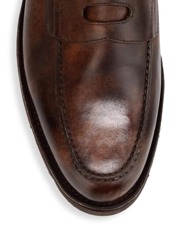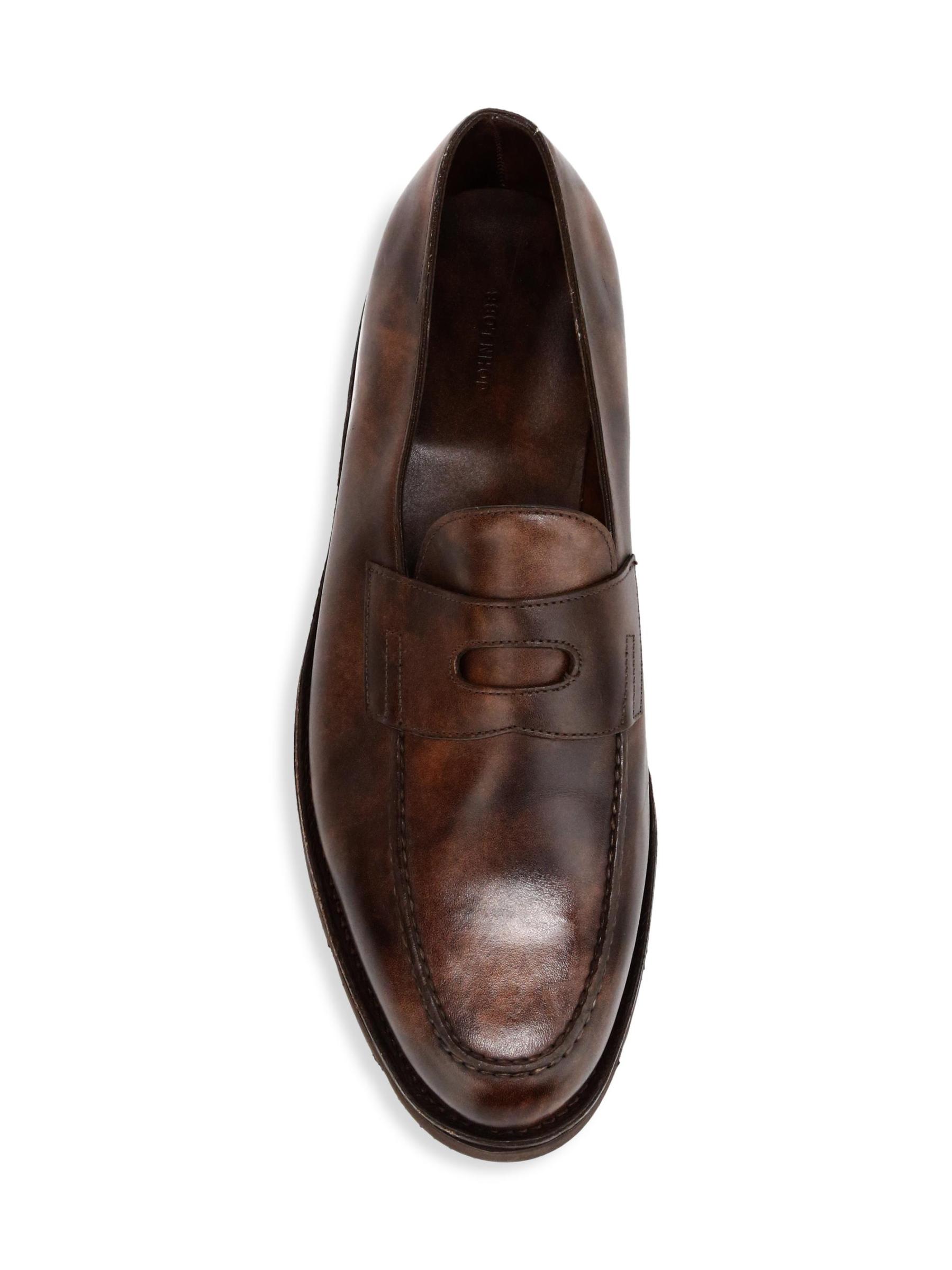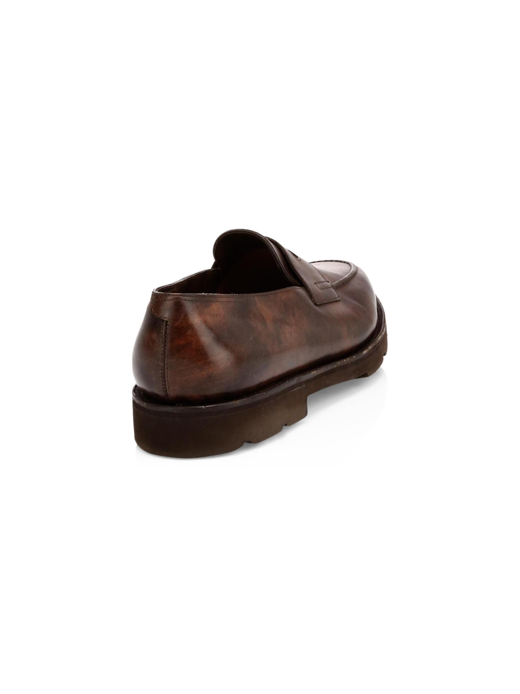 Resting on a stacked lug sole, John Lobb's Lopez loafers are crafted of smooth calf leather. This slip-on pair flaunts an almond toe complemented by a penny strap.