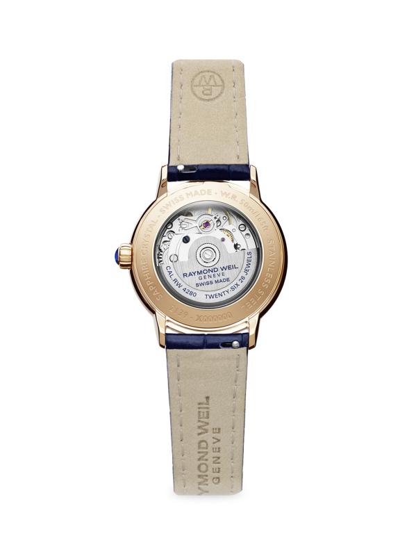 From the Maestro Collection. Diamond pavé adds shine to this timeless watch with mother-of-pearl dial and moon phase function, finished with a stylish croc-embossed leather strap.Mechanical movement with automatic winding Diamond bezel, 0.20 tcw Rose gold PVD-plated stainless steel crown Mother-of-pearl dial Moonphase function at 6 o’clock Rose gold PVD-plated stainless steel case Croc-embossed leather strap Pin buckle closure Made in Switzerland