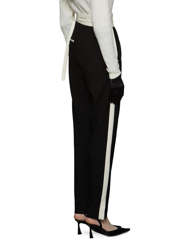 Crafted of twill suiting, Et Ochs' Magnus pants are cut for a slim silhouette with a high rise. The waist is defined by a contrasting satin cummerbund that is side-swept for an asymmetric look.