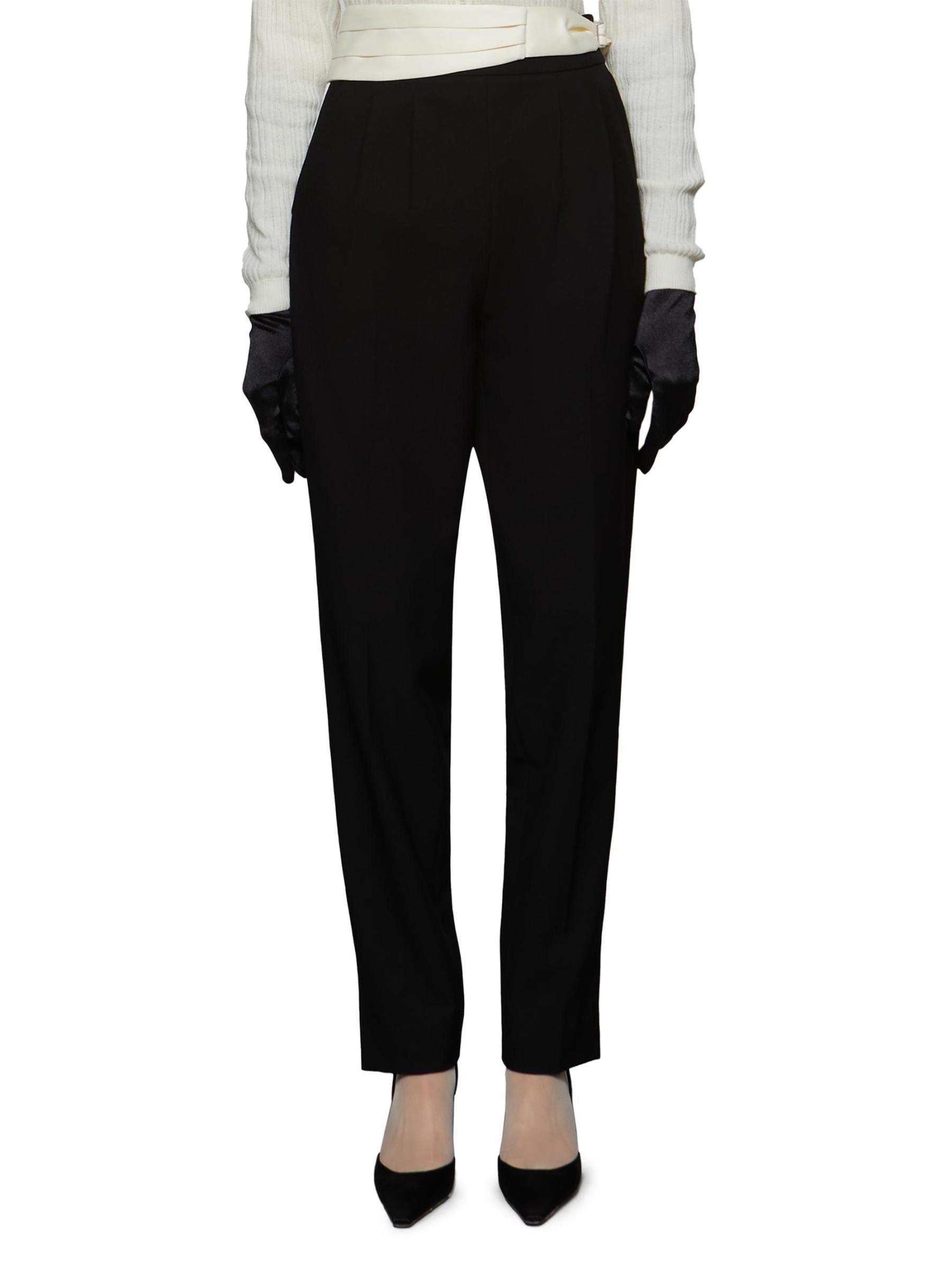 Crafted of twill suiting, Et Ochs' Magnus pants are cut for a slim silhouette with a high rise. The waist is defined by a contrasting satin cummerbund that is side-swept for an asymmetric look.Cummerbund waistband Pulls on 72% polyester/15% rayon/3% wool/3% cupro/3% acetate/4% spandex Dry clean Imported