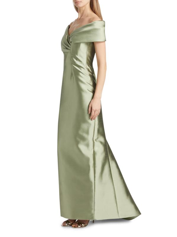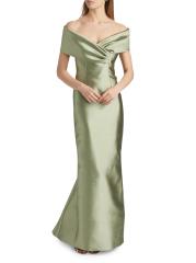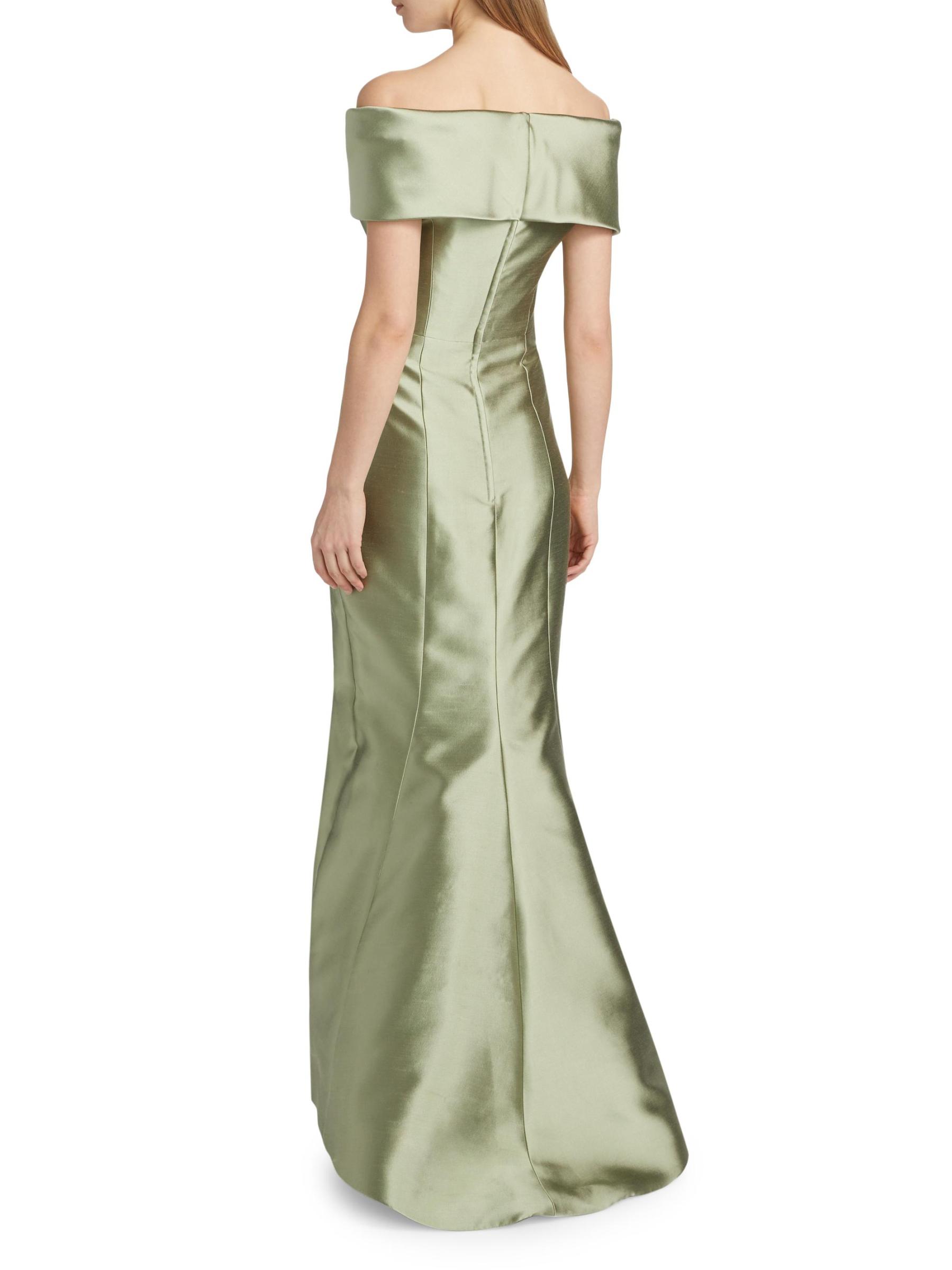 Catherine Regehr’s Margaret Gown is cut from silk radzimir to a glamorous off-the-shoulder silhouette with a trumpet hem.Surplice off-the-shoulder neckline Drop short sleeves Concealed back zip Trumpet hem Silk/wool Dry clean Made in Canada