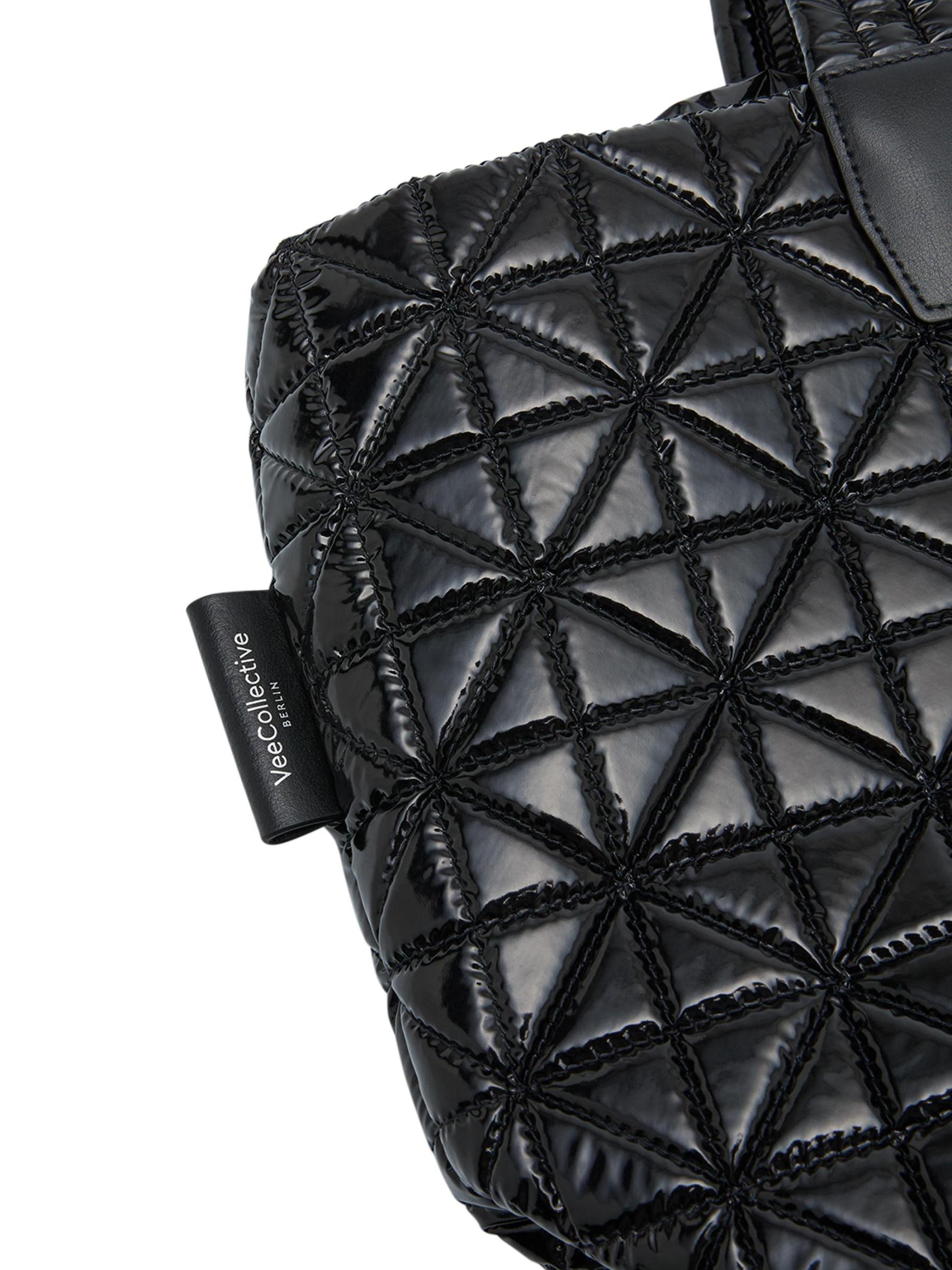 Vee Collective's Vee medium tote bag flaunts a water-resistant quilted finish and sleek faux-leather trim. Detailed with a removable crossbody strap, this piece features flat top handles and a zip closure.