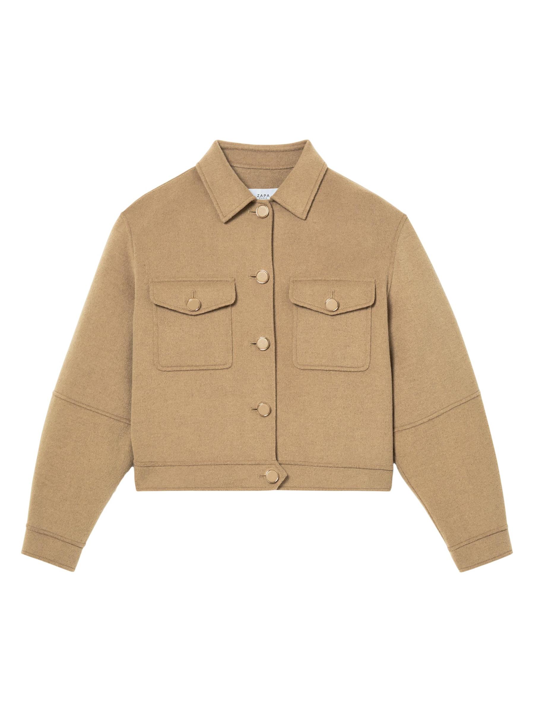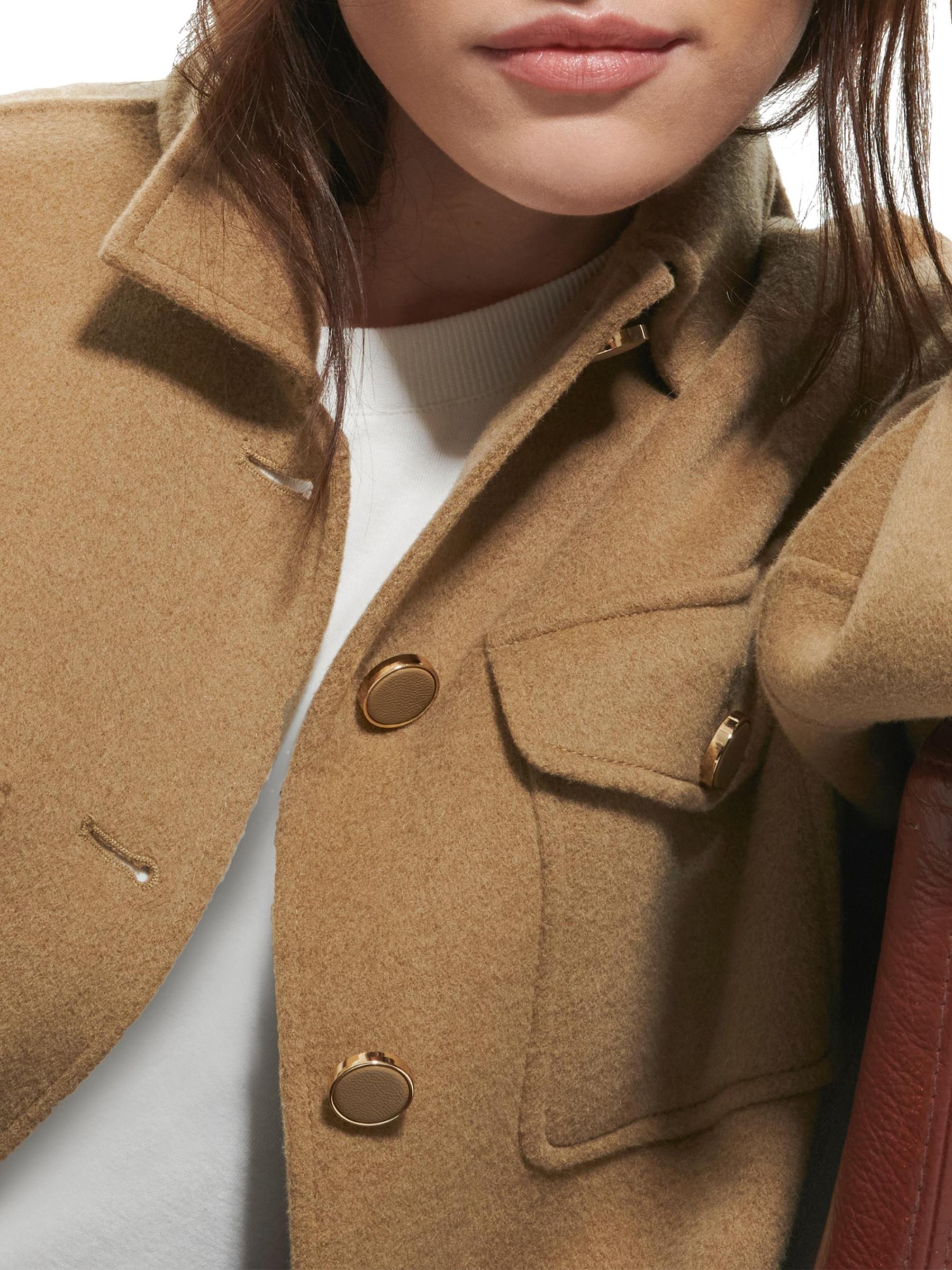 Crafted of a wool blend, this Melania shirt jacket from Zapa is styled with a spread collar, long sleeves, and button-through flap pockets at the chest.Spread collar Long sleeves button cuffs Chest button-through flap pockets Button front closure 80% wool/20% polyamide Dry clean Imported