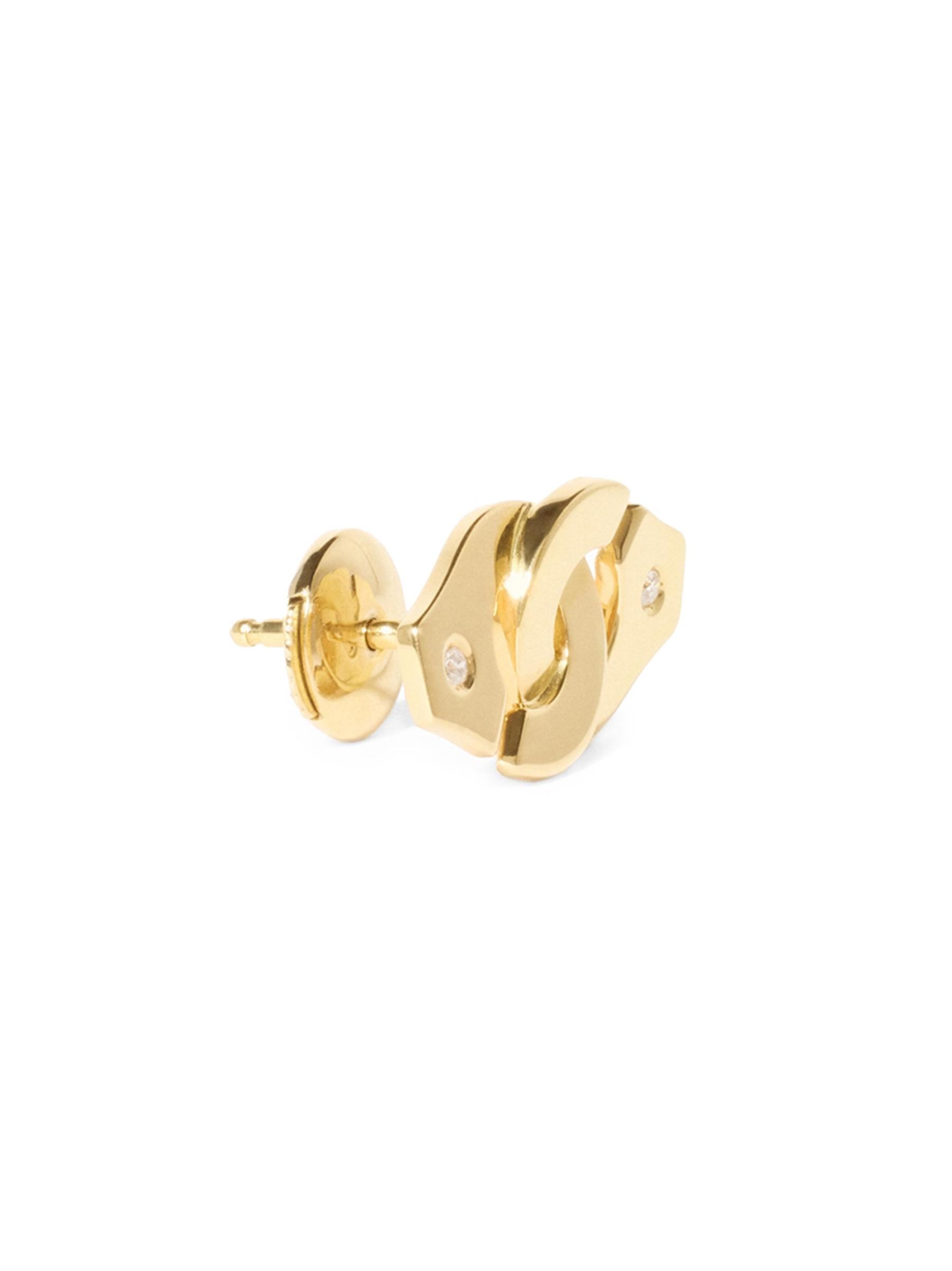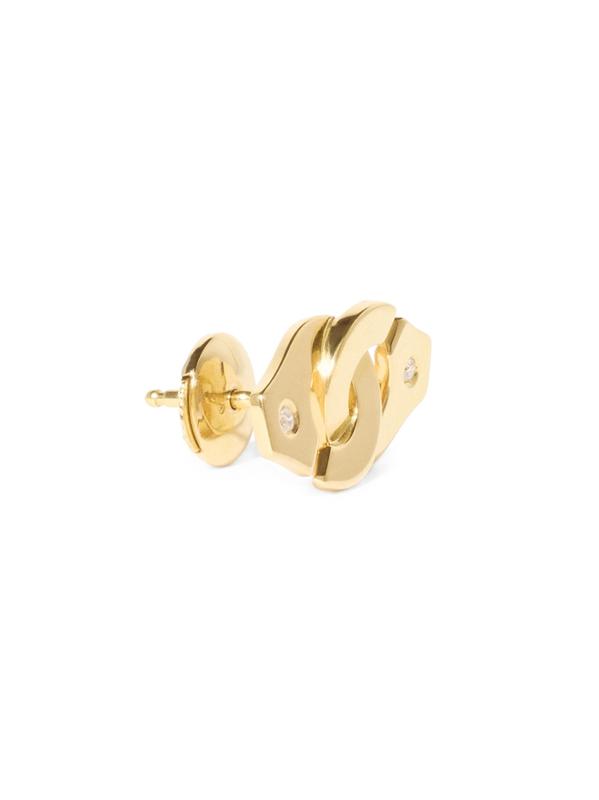 From the Menottes Collection. Designed with the label's iconic handcuff motif, this stud earring from Dinh Van is crafted of polished 18K yellow gold accented with two shimmering diamonds.
