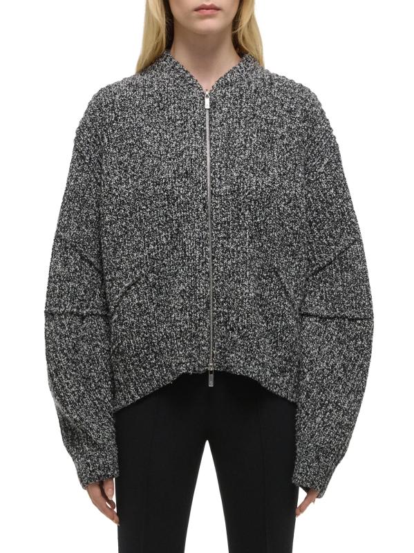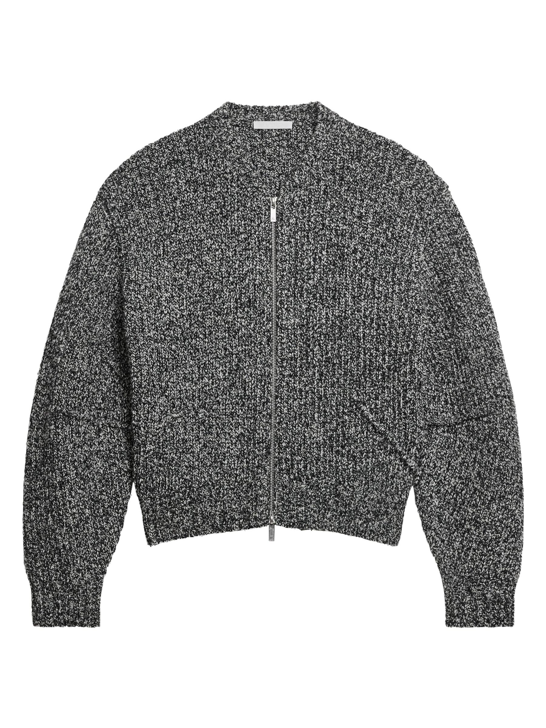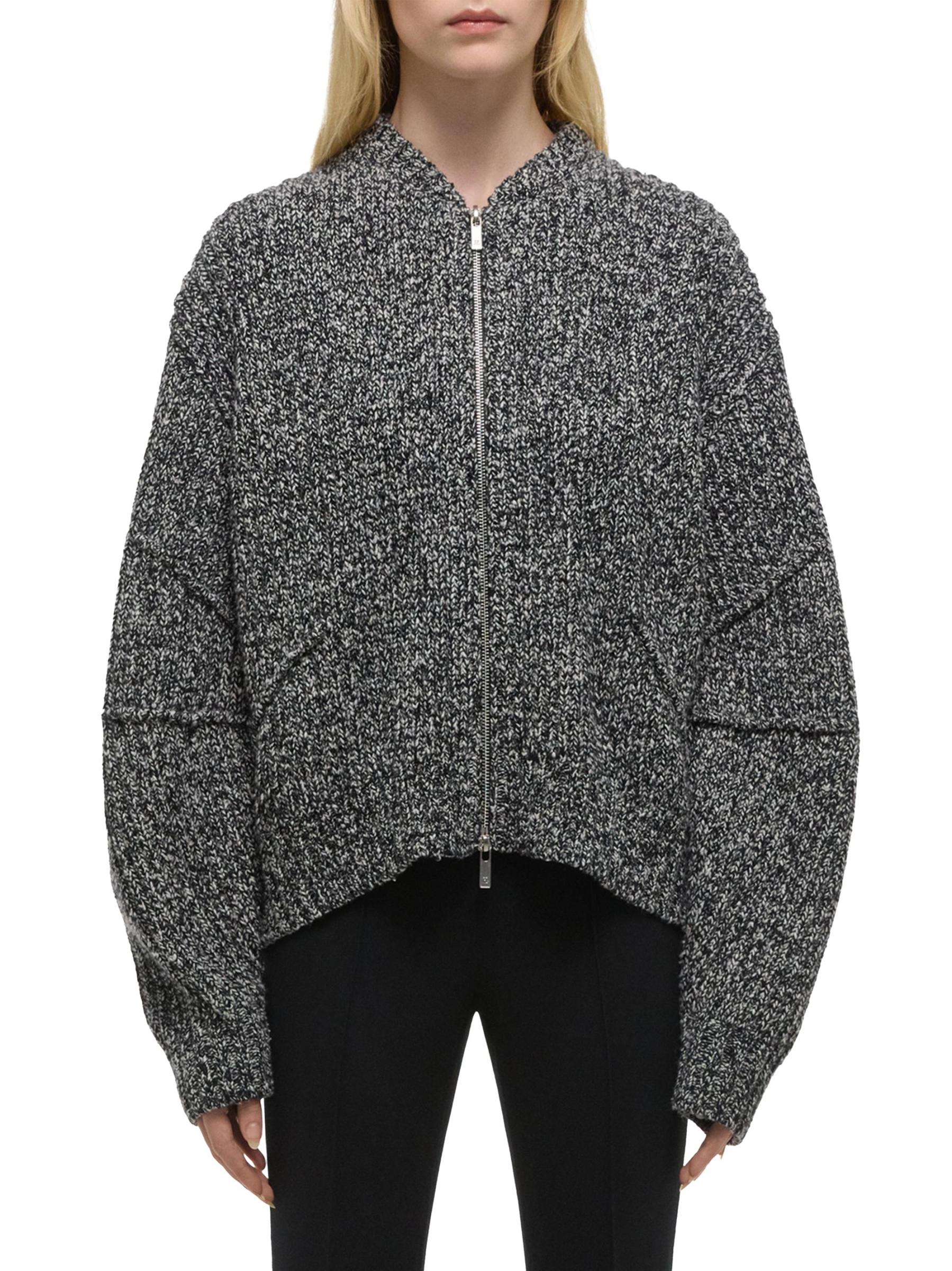 The Merida sweater from Helmut Lang is crafted of a marled wool blend, featuring a zip-up design for a modern, casual look.