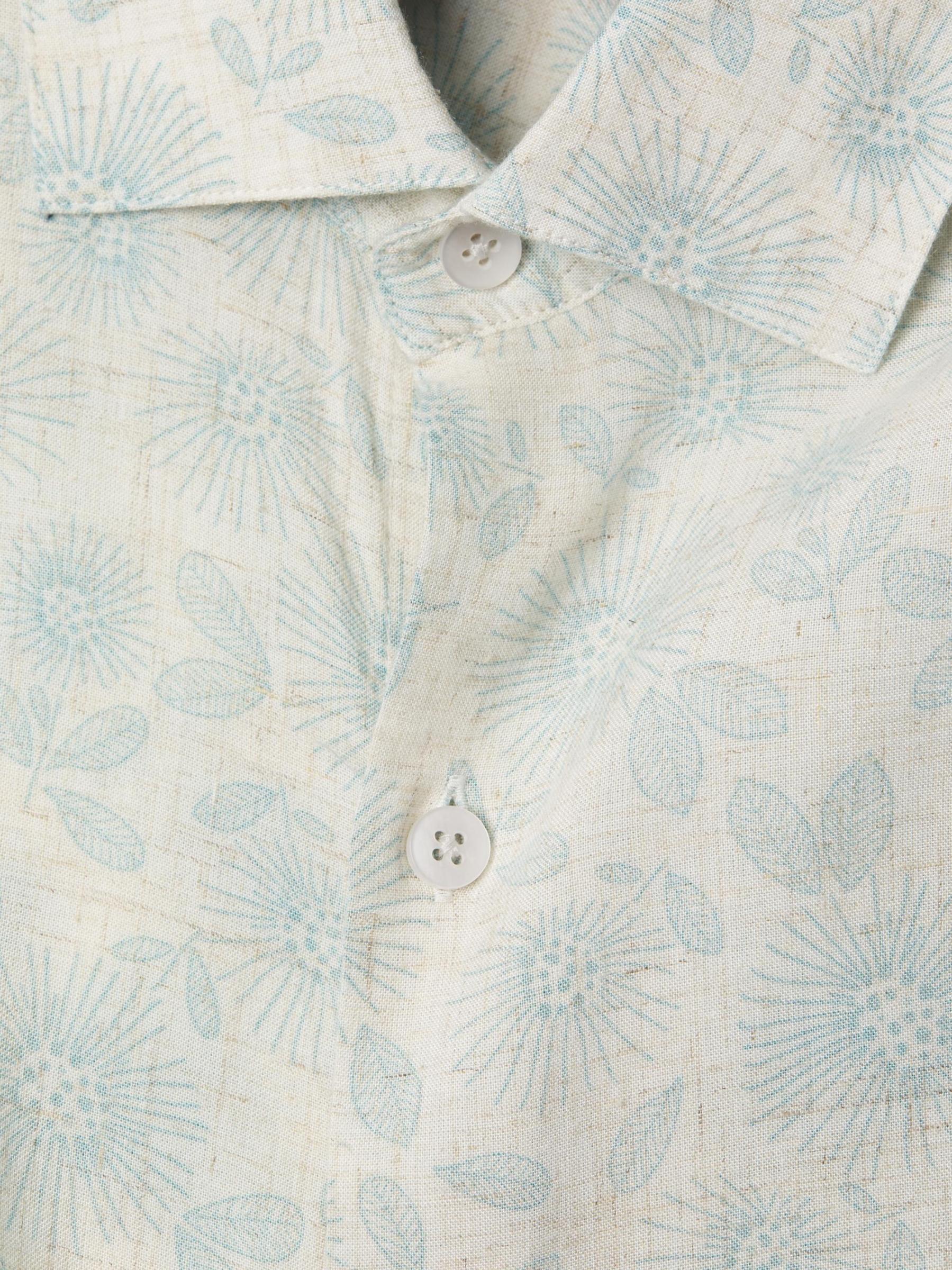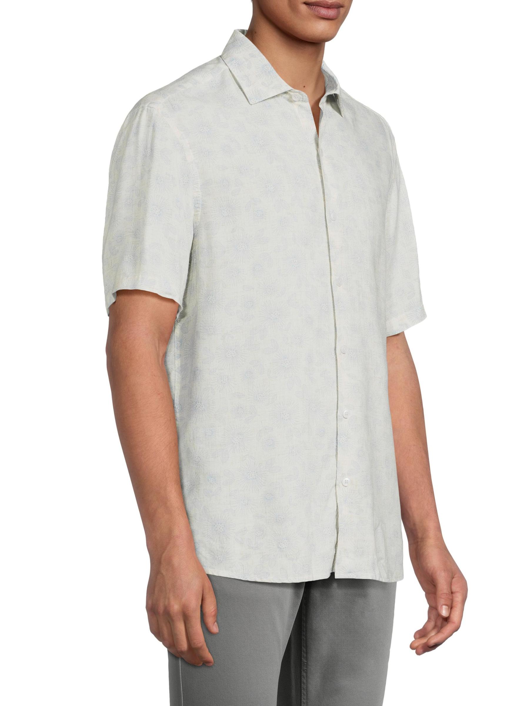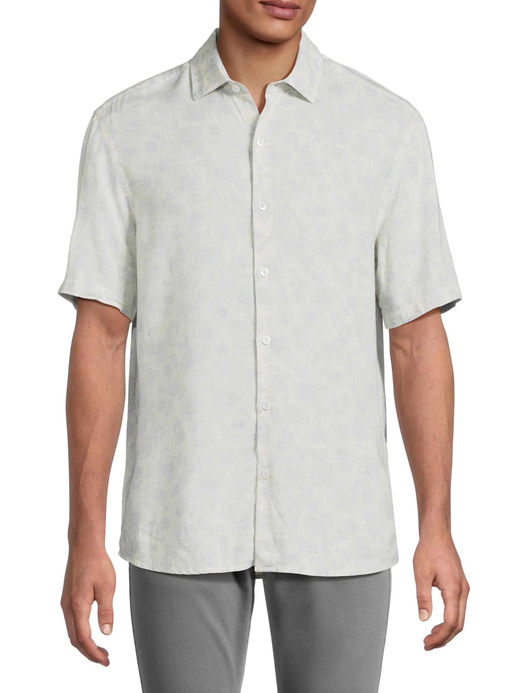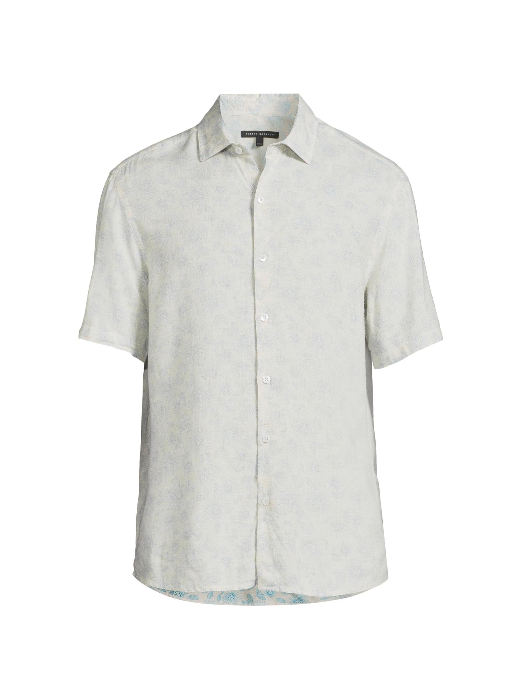 Crafted of a soft viscose-linen blend, the Merrick button-front shirt from Robert Barakett features a subtle reverse floral print on a slub texture base.
